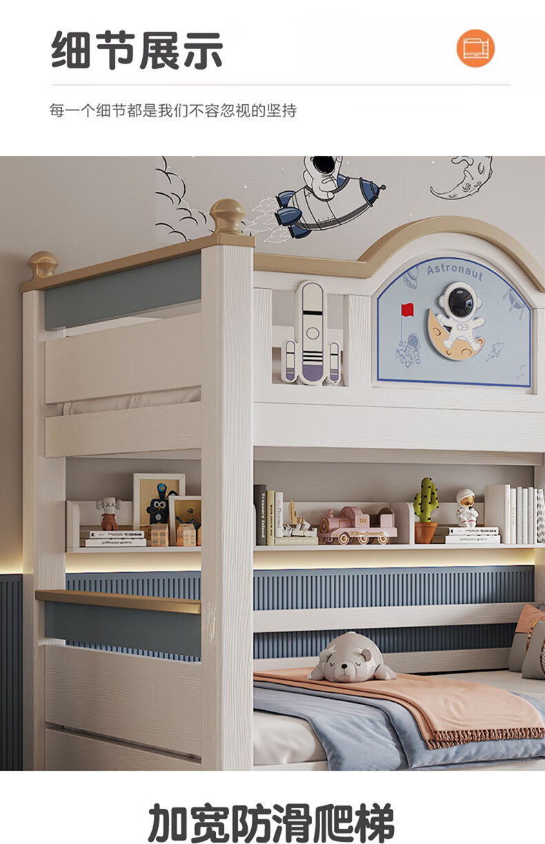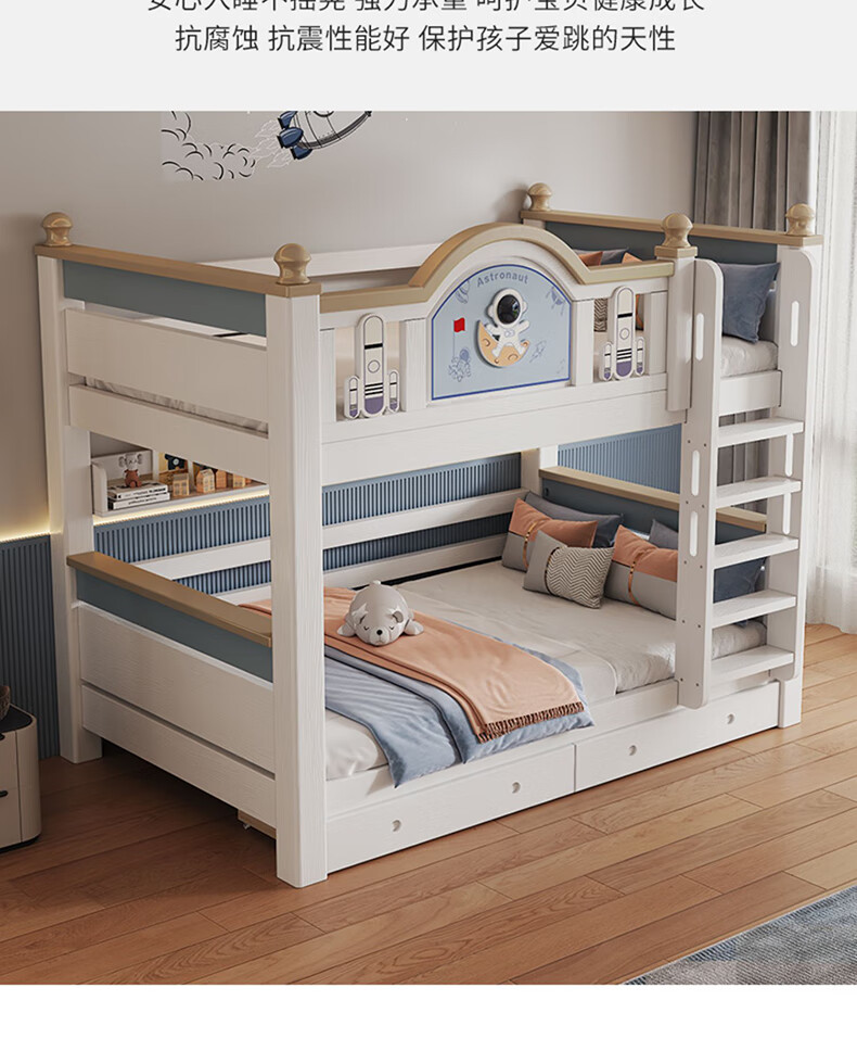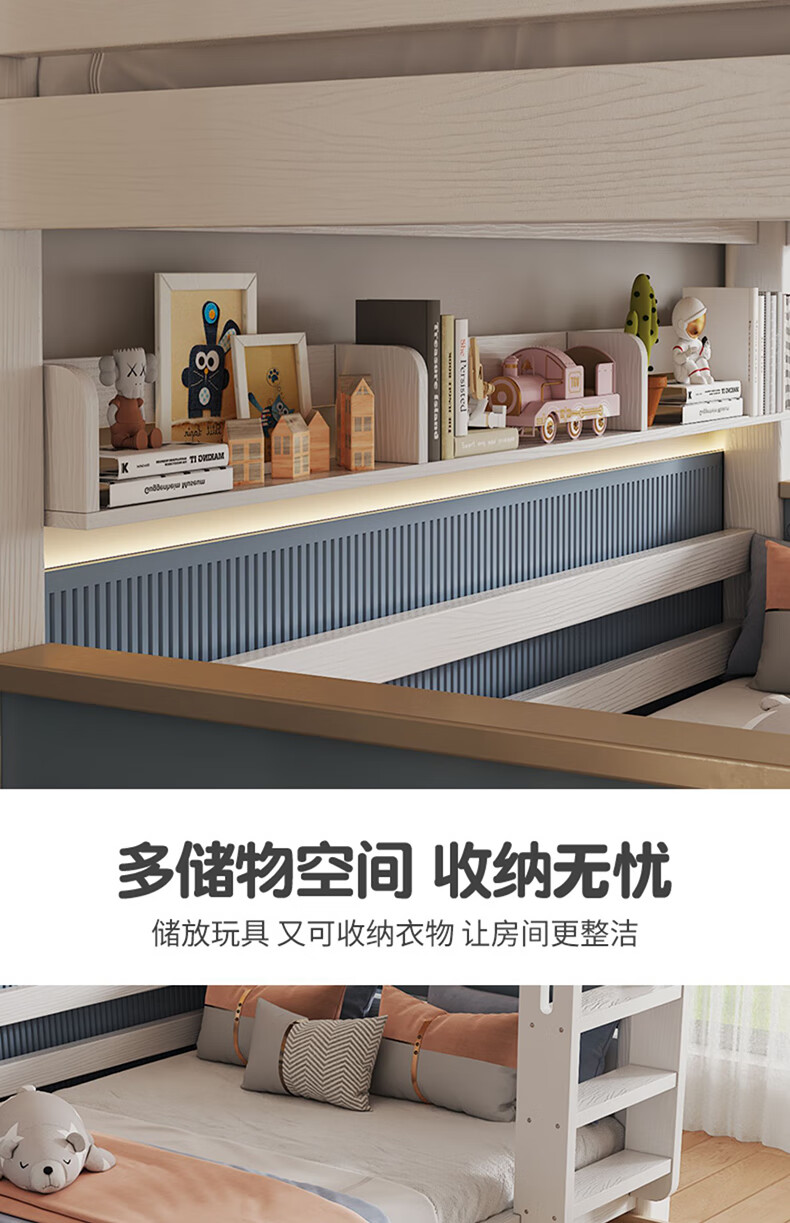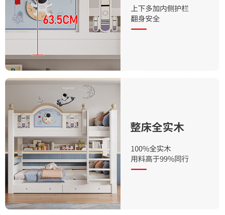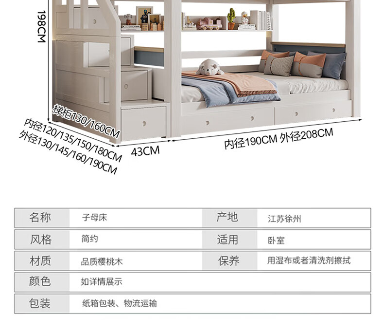 Ziwei all solid wood bunk bed, double bunk bed, upper and lower bunk beds with the same width, children's bed, small apartment, two-story high and low bed, ladder cabinet + bookshelf + double drawers, free 6D latex mattress, upper bunk width 120cm* bottom bunk width 120cm