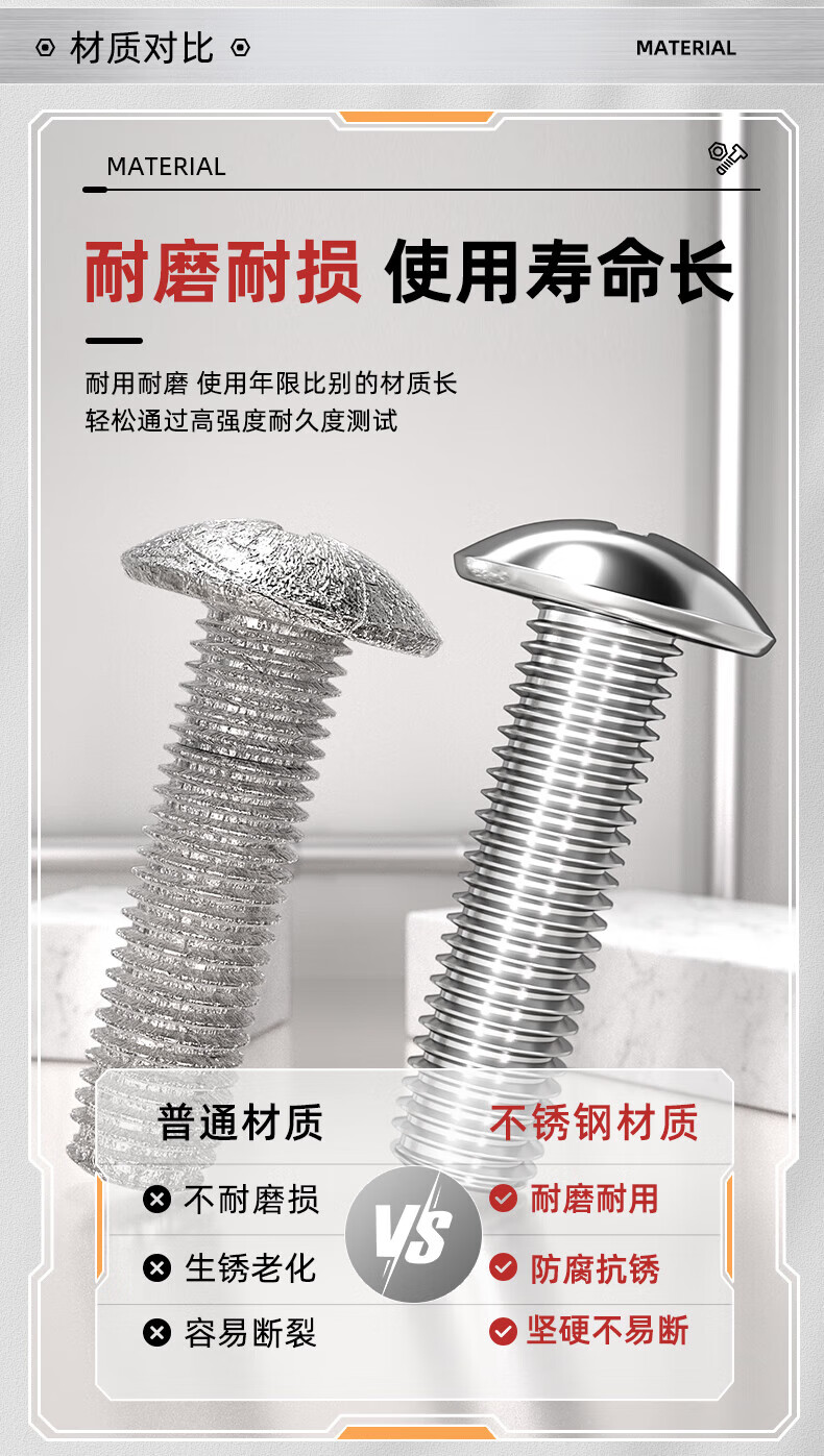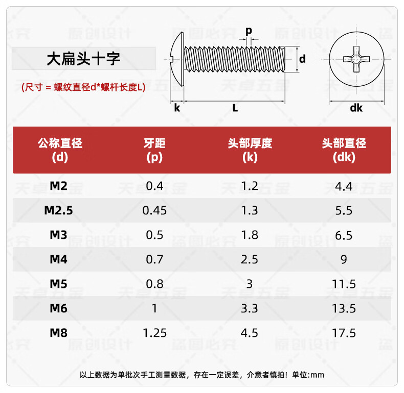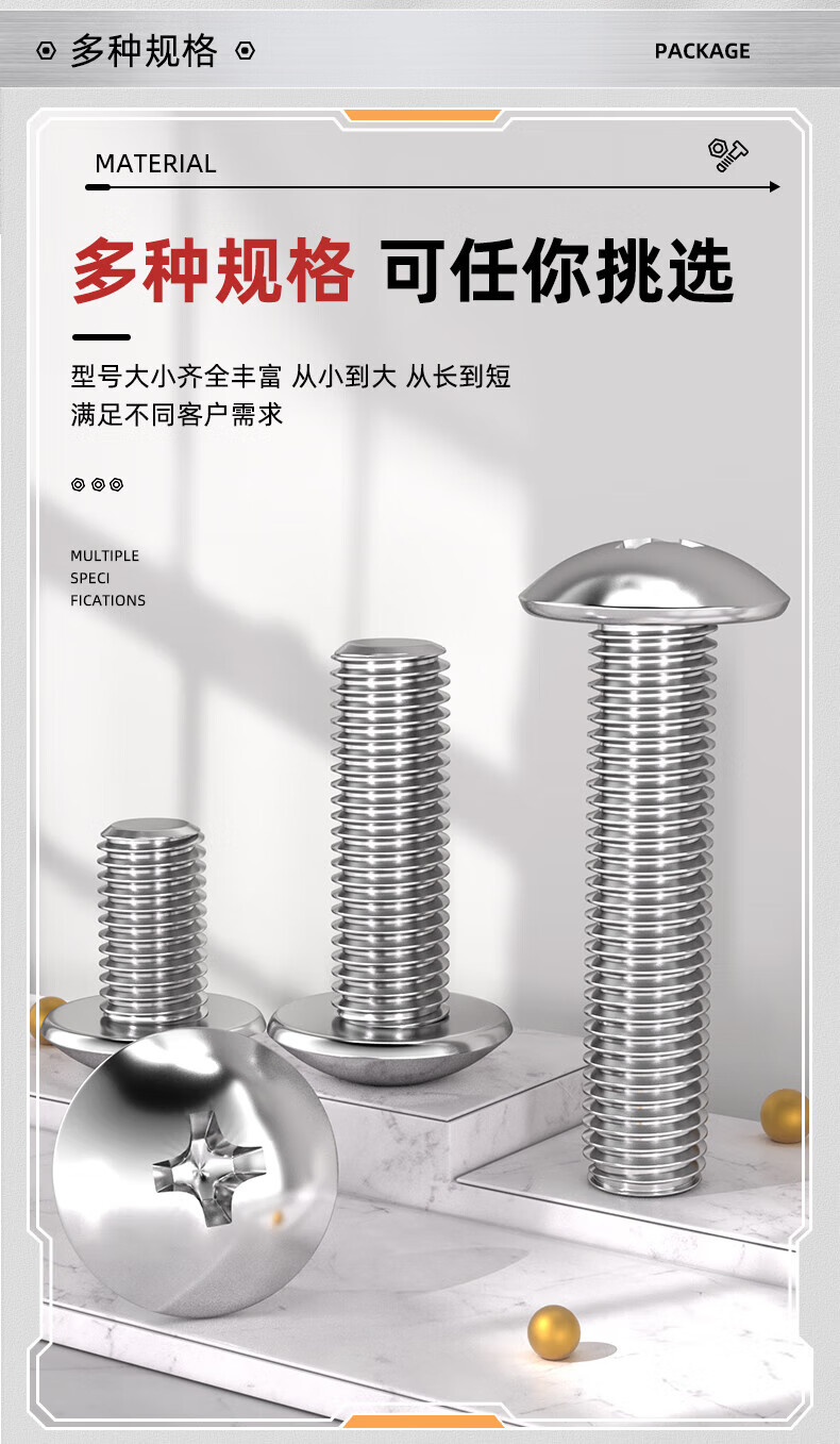 Tianzhuo Hardware 201 stainless steel cross large flat head screw machine screw mushroom head bolt flat head large head umbrella head M3M4M5M6 M4*6-100 pieces