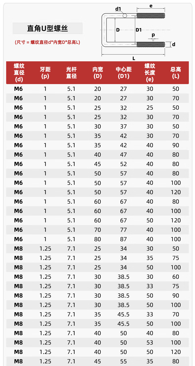 Tianzhuo Hardware 304 stainless steel square card right-angle card U-shaped bolt right-angle screw U-shaped square card pipe card square pipe clamp pipe hoop M6*45*80 2 sets (including baffle nuts)