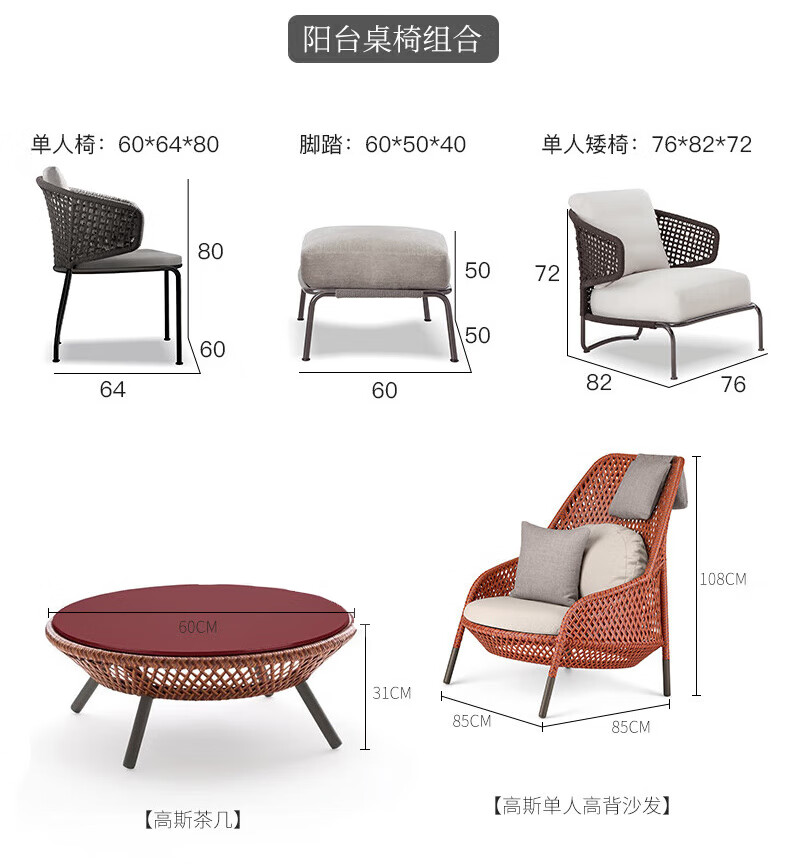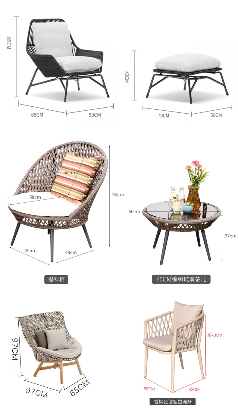 ROYAL RATTAN Outdoor Rattan Chair Rattan Creative Furniture Nordic Modern Balcony Single Sofa Chair Courtyard Garden Leisure Rattan Chair Double Chair + 50*50 Small Coffee Table