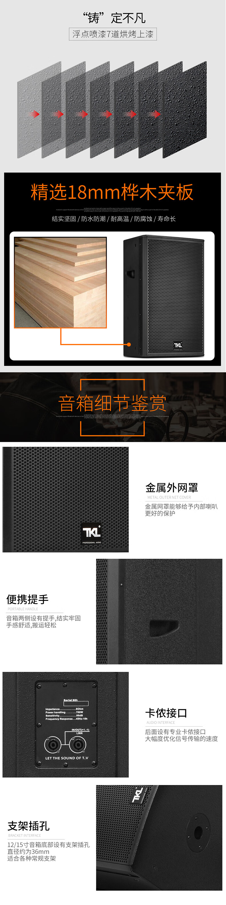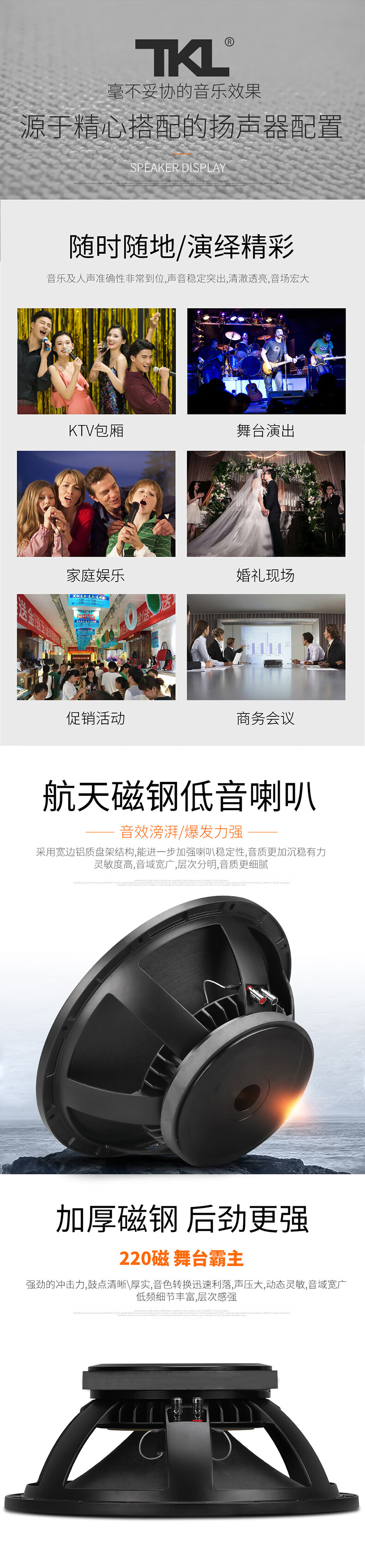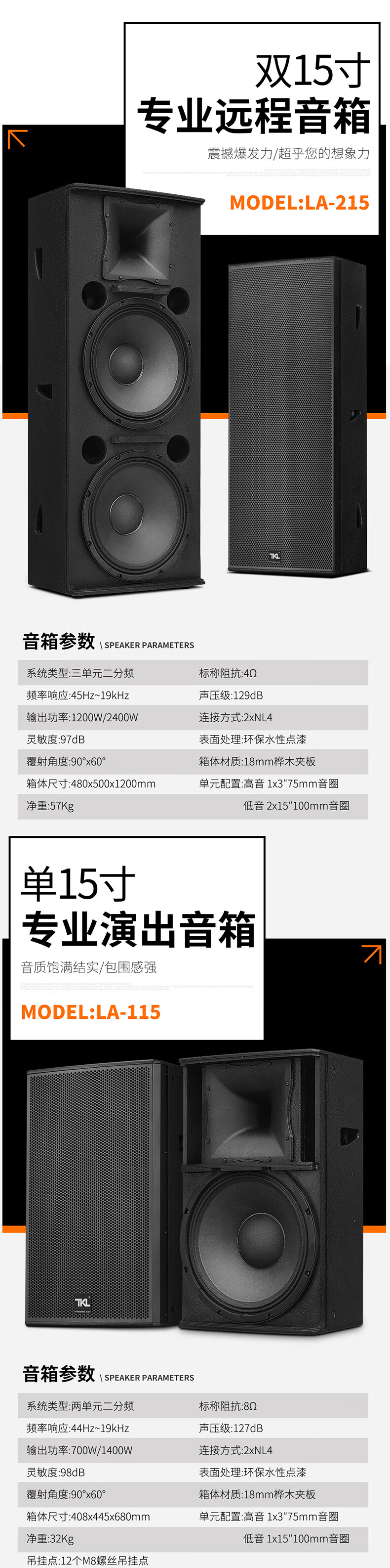 TKL LA series professional stage full-range audio set high-power single 12-inch passive speaker large outdoor performance wedding conference square bar engineering KTV performing arts LA-215 (220 magnetic 75 core 1200W)