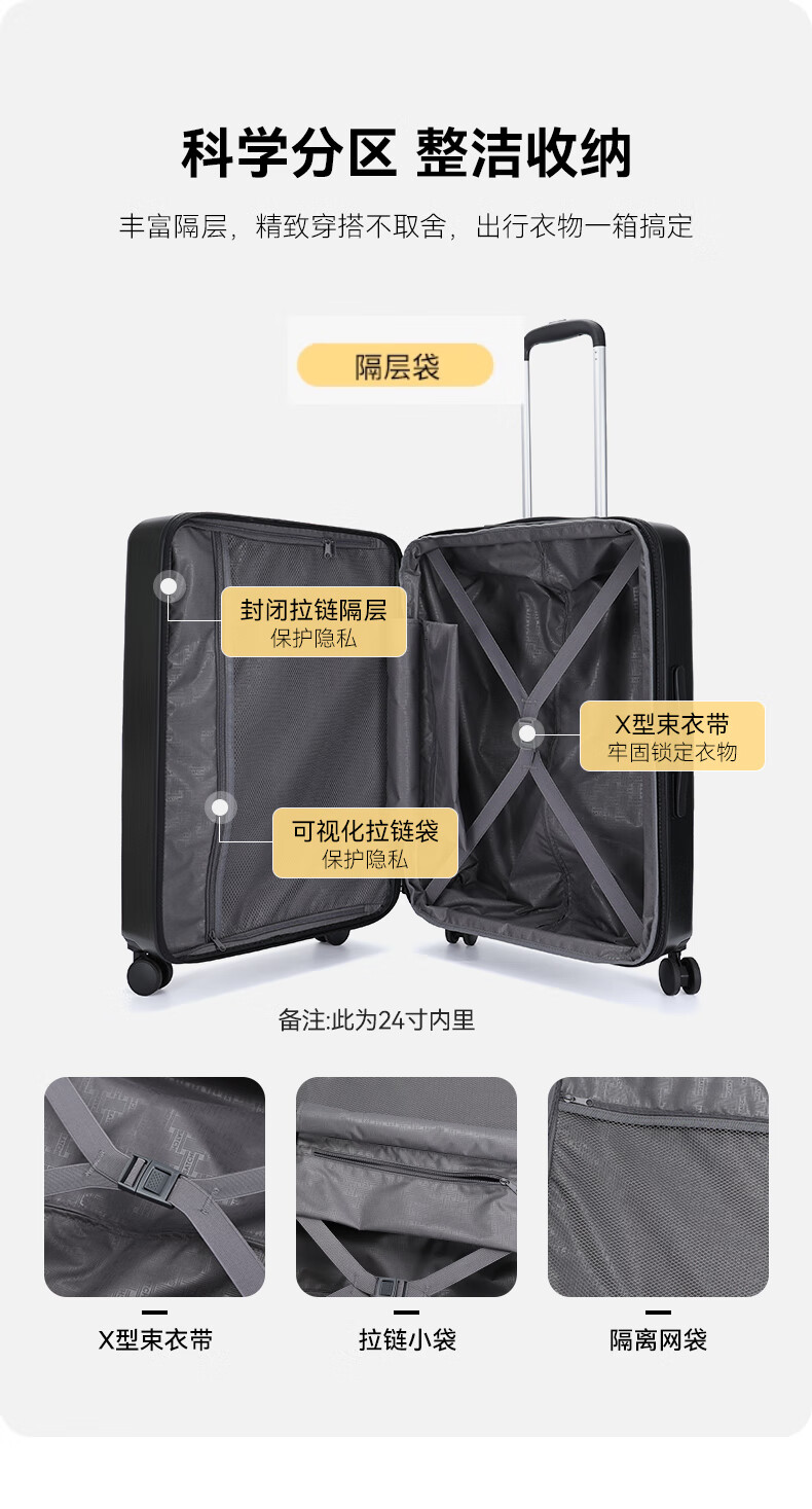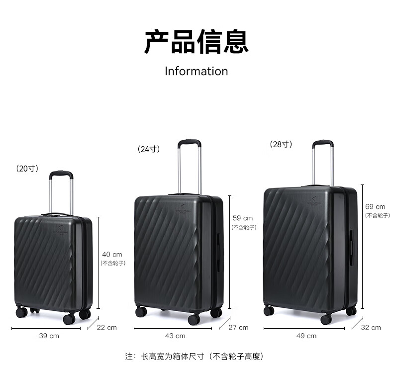 SATCHI trolley case, durable and multifunctional suitcase, caster suitcase, multi-size available, black 24 inches