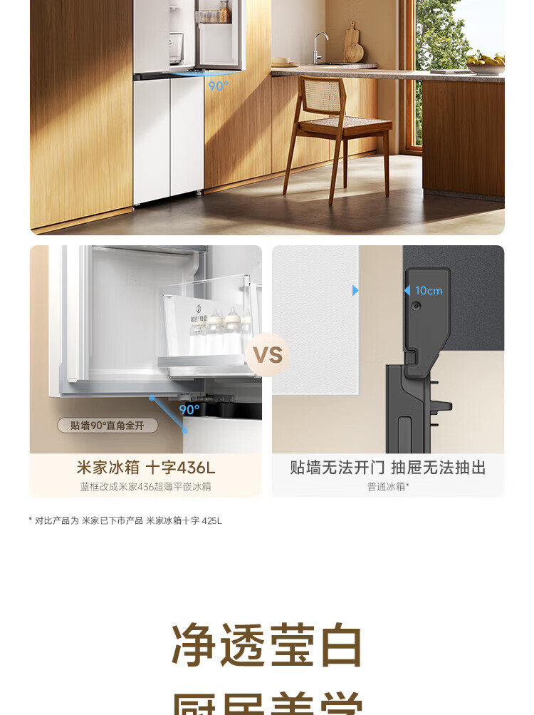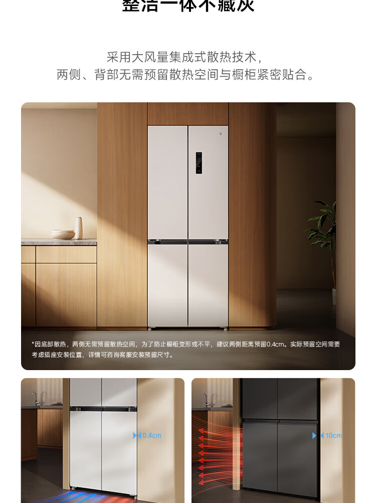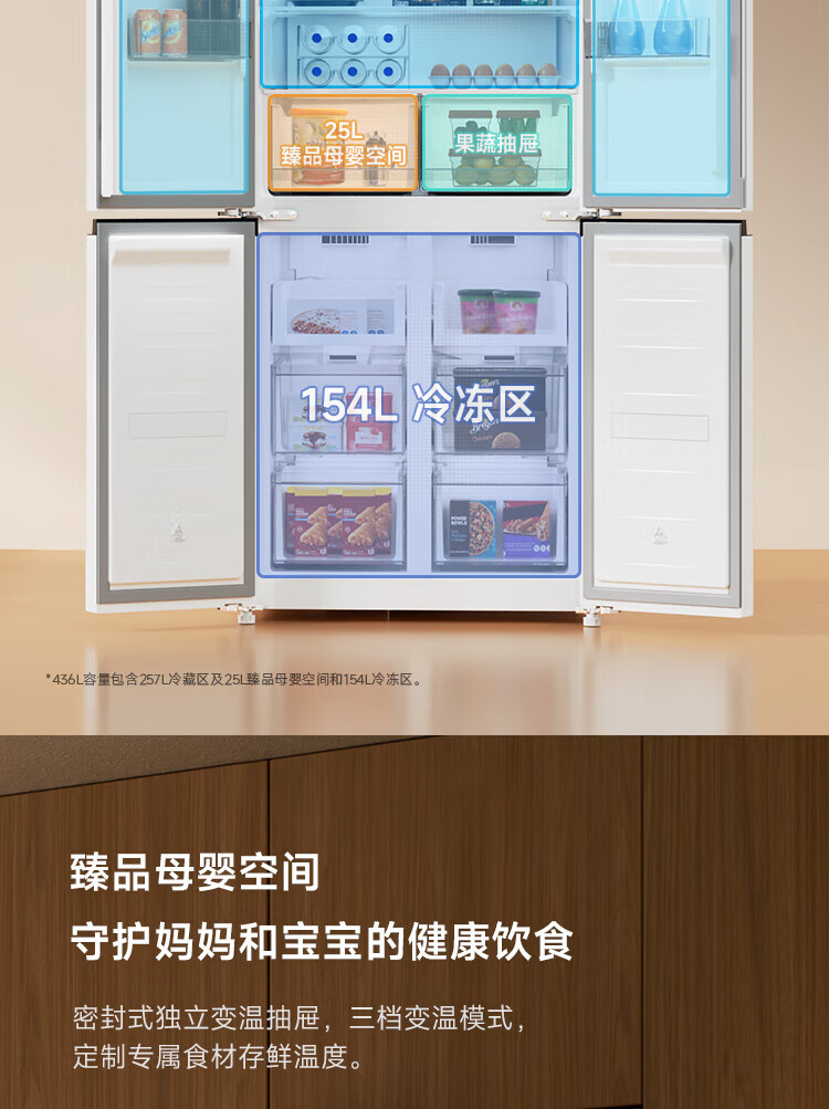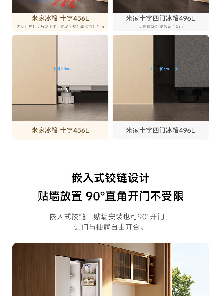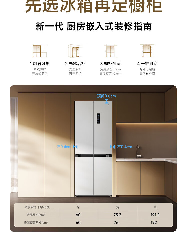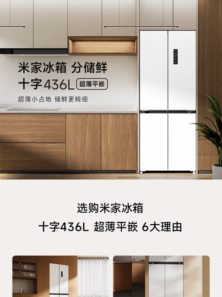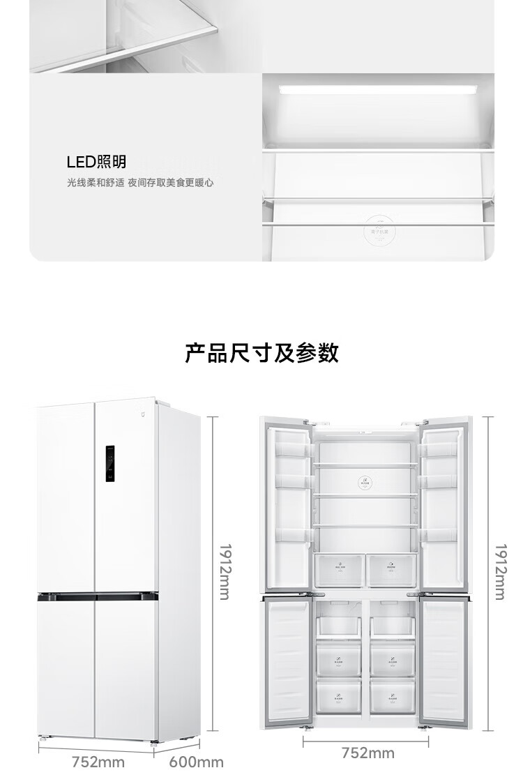 Mijia Xiaomi refrigerator 436 liters four-door cross-door refrigerator household large capacity 60cm ultra-thin flat embedded zero-embedded first-level energy efficiency BCD-436WMBI