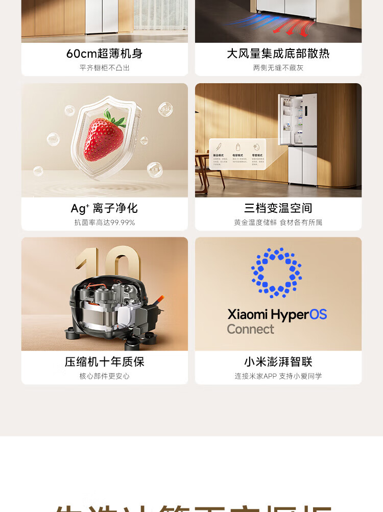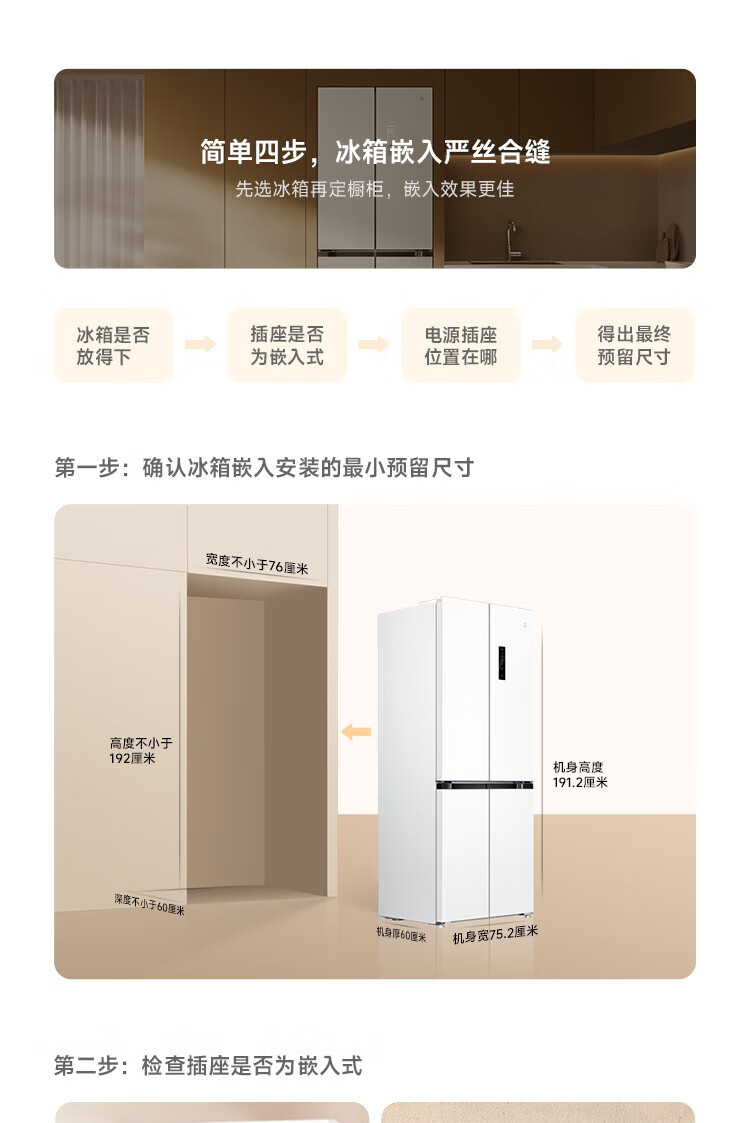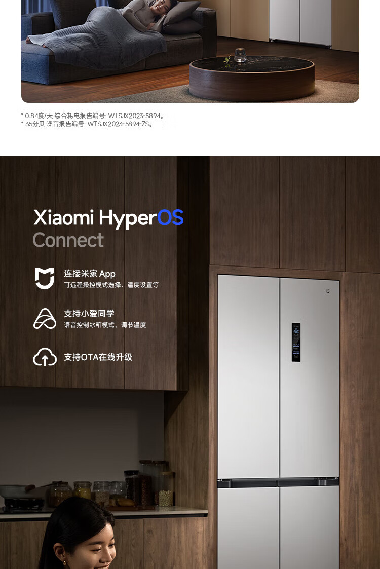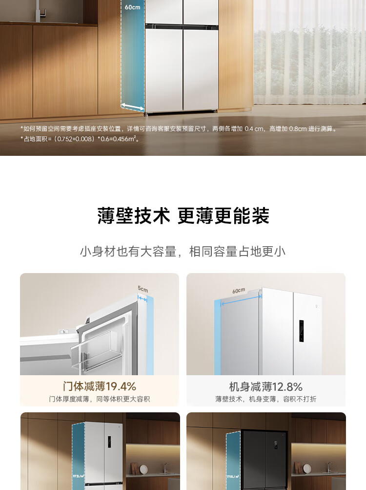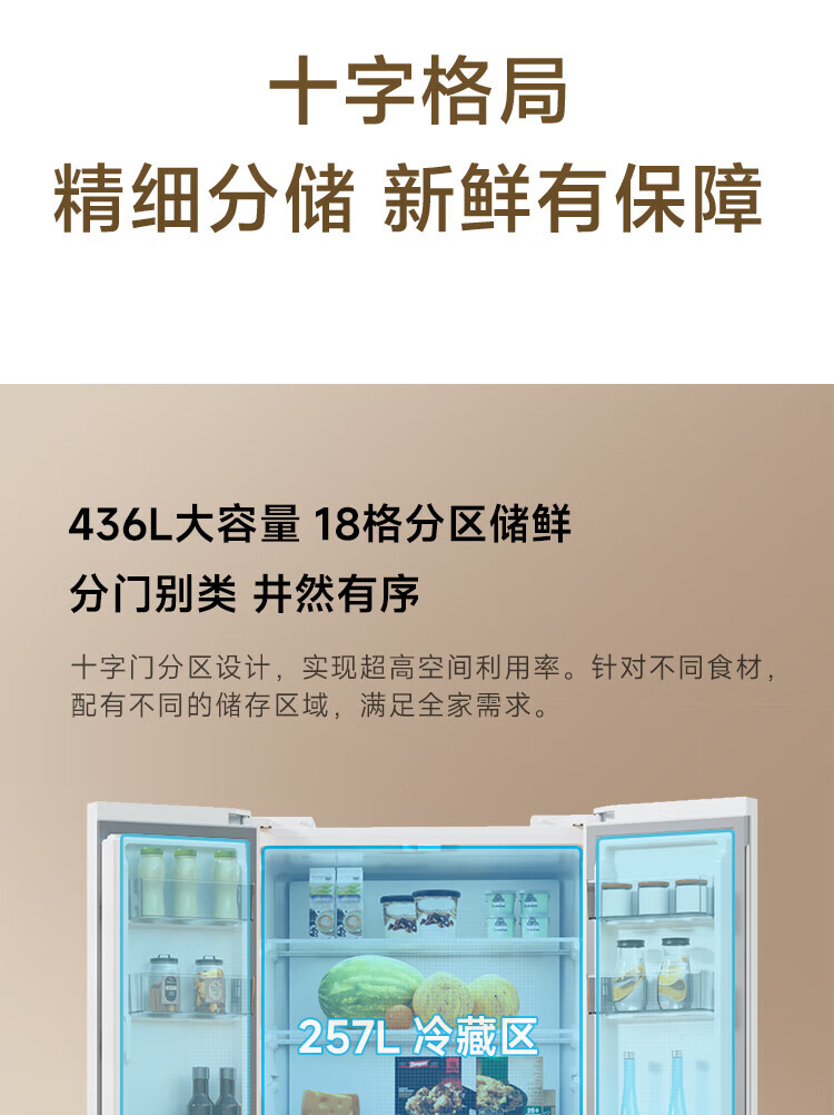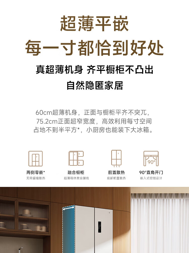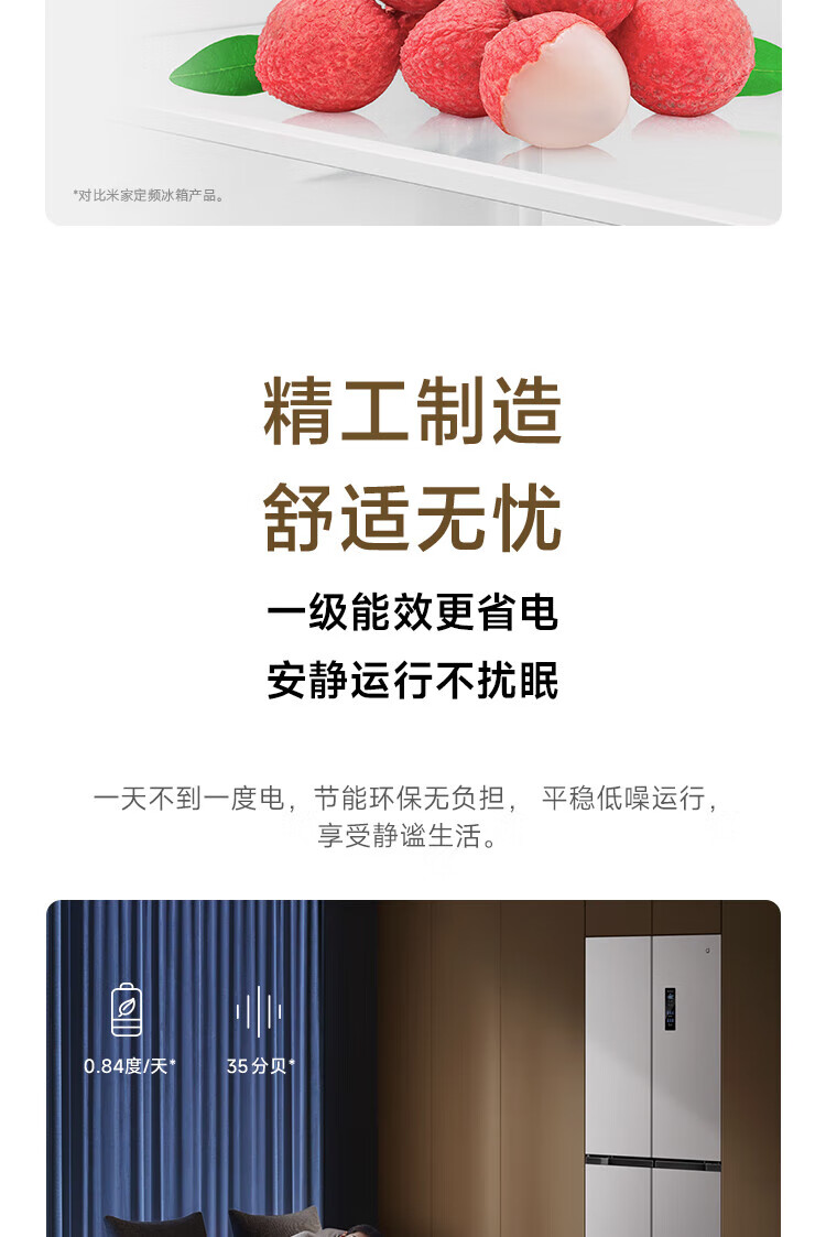 Mijia Xiaomi refrigerator 436 liters four-door cross-door refrigerator household large capacity 60cm ultra-thin flat embedded zero-embedded first-level energy efficiency BCD-436WMBI