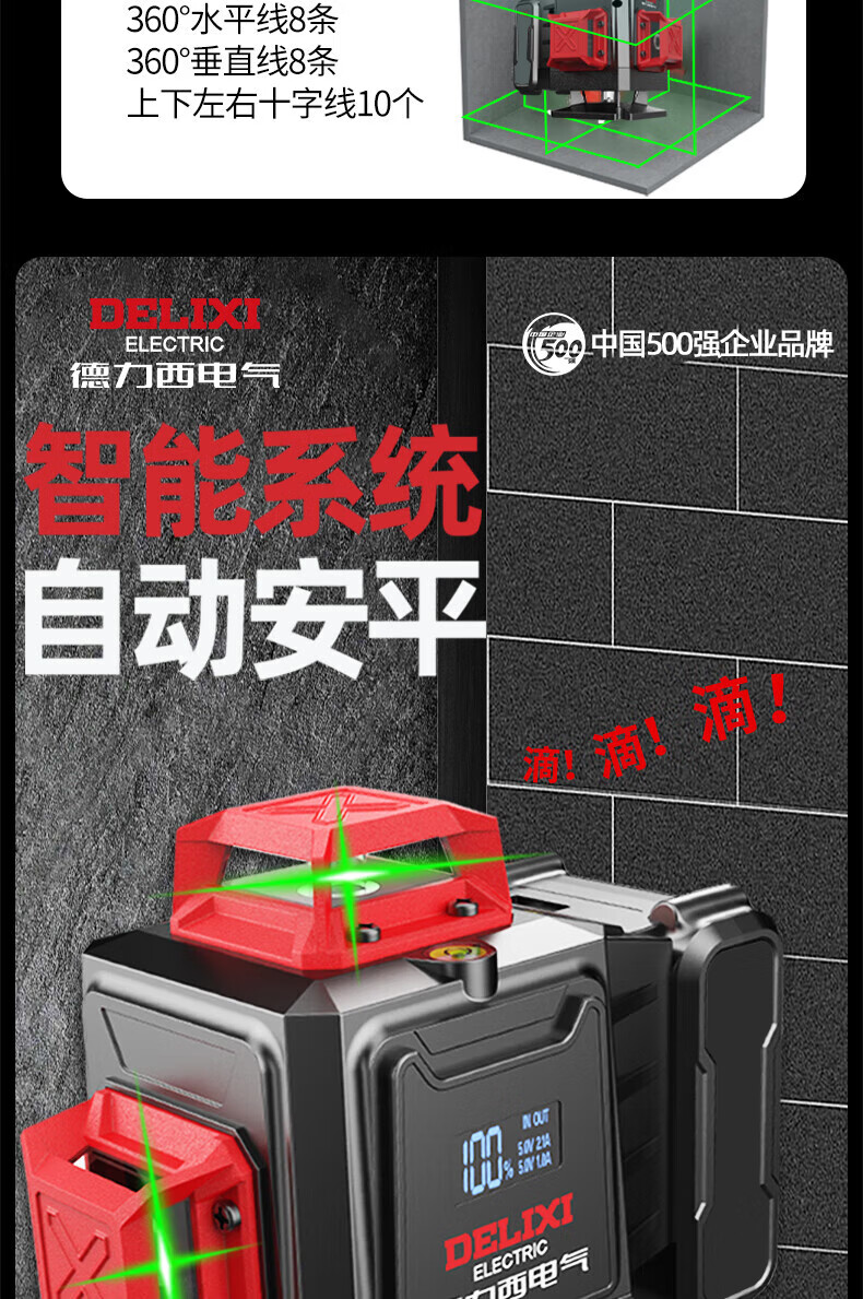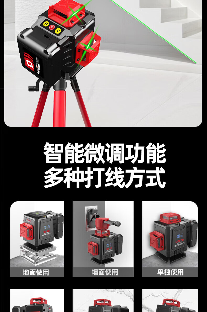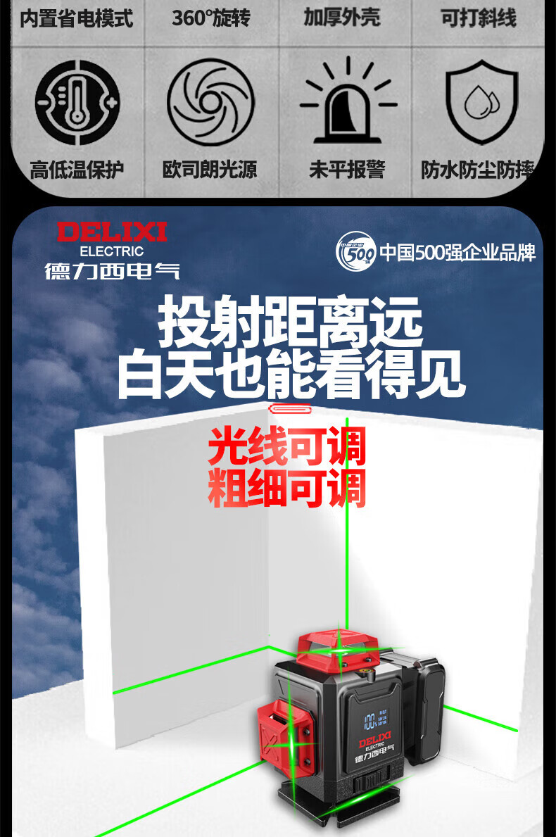 Delixi Electric Infrared Level High-precision Strong Light Thin Line Automatic Leveling Green Light Blue 12-Line Laser Outdoor Building Outdoor Imported Green Light 12-Line Standby King The machine has its own power display and a full set of accessories