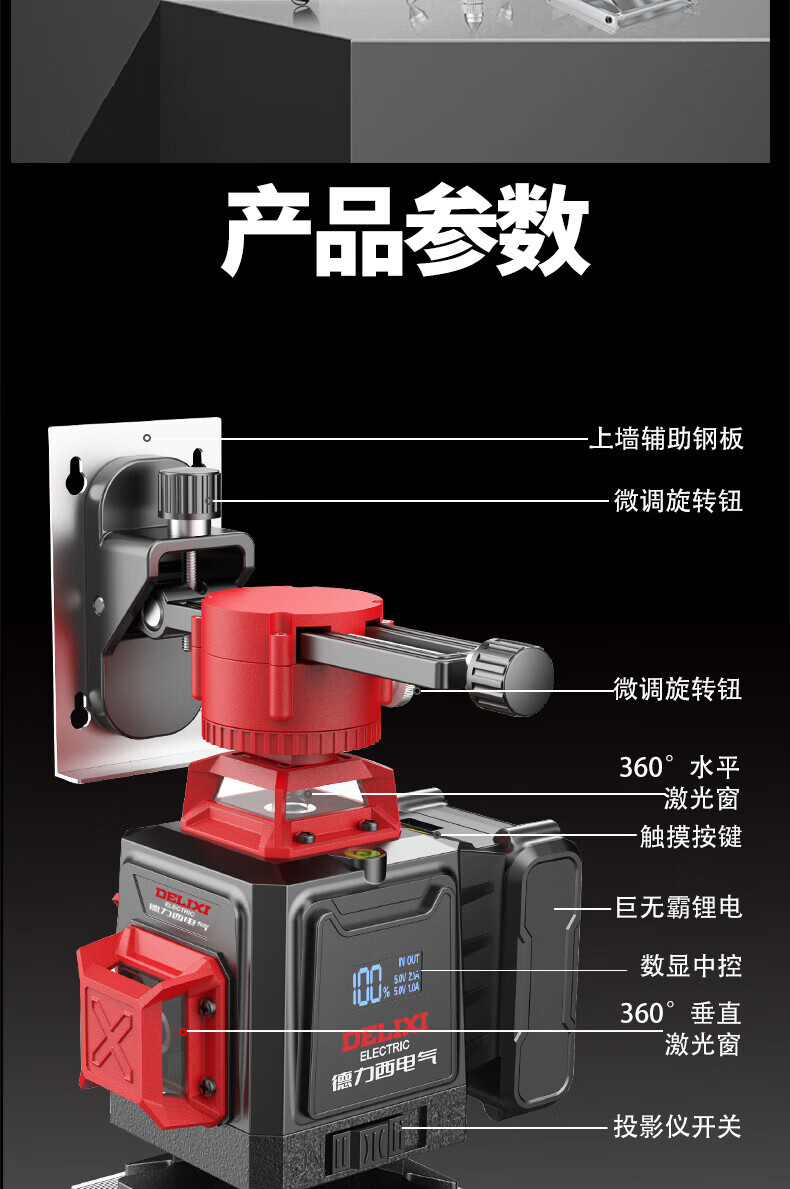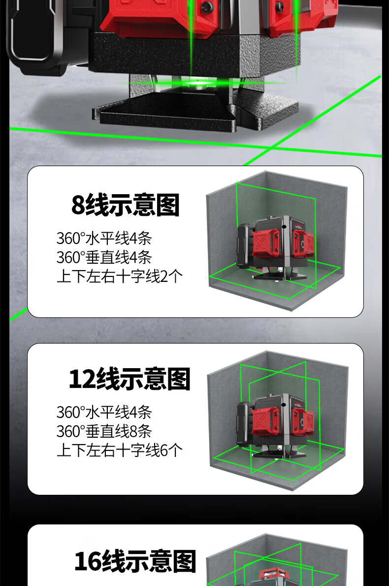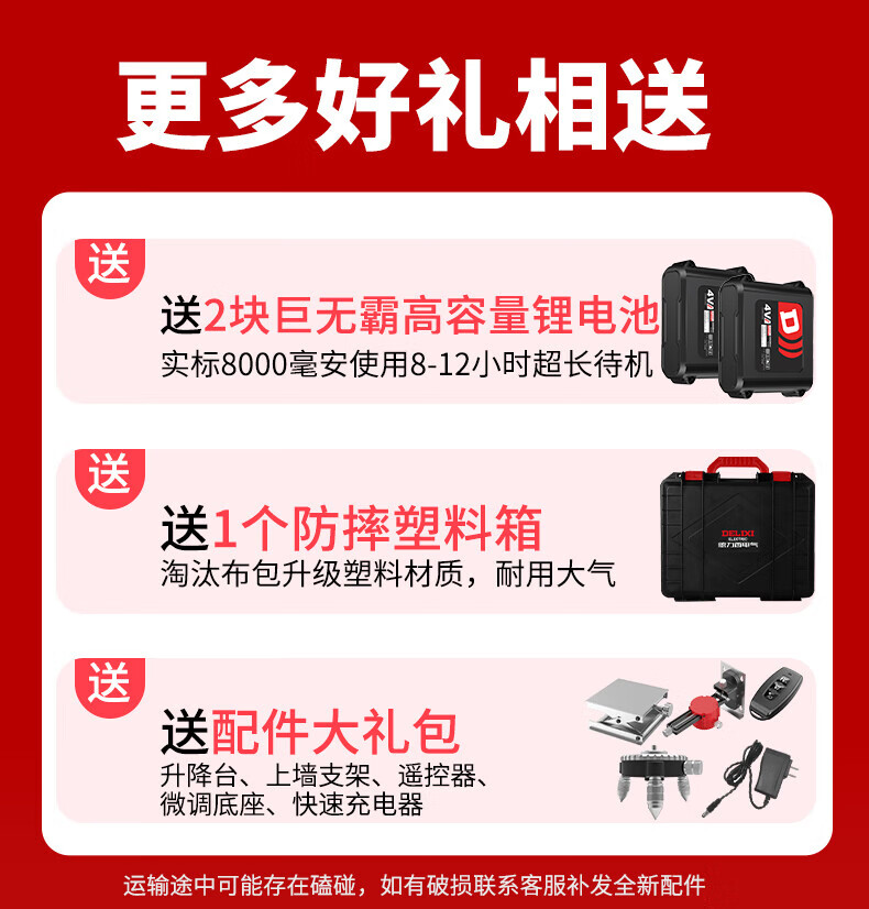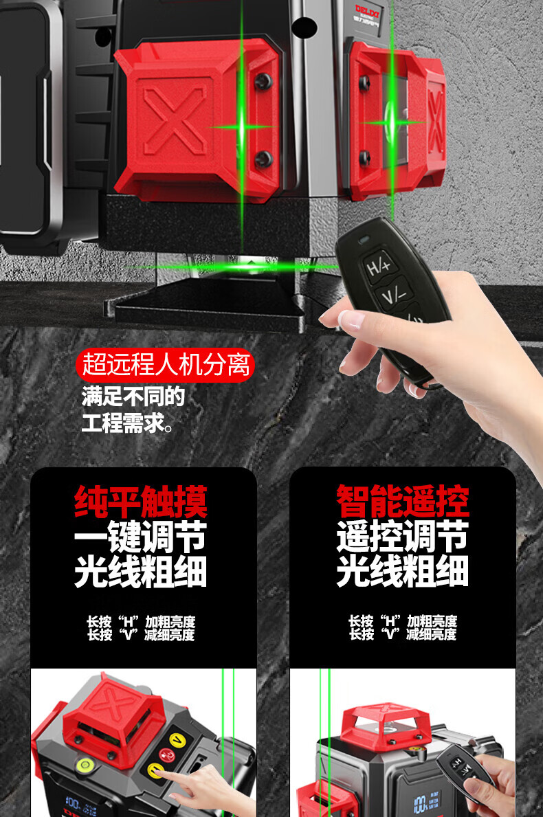 Delixi Electric Infrared Level High-precision Strong Light Thin Line Automatic Leveling Green Light Blue 12-Line Laser Outdoor Building Outdoor Imported Green Light 12-Line Standby King The machine has its own power display and a full set of accessories