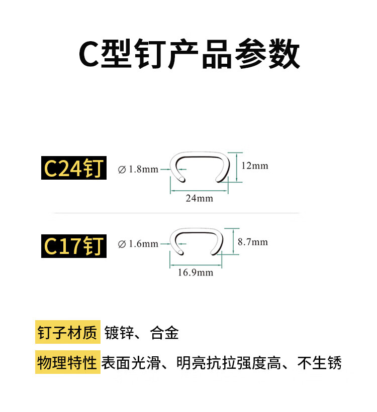 Aoyumate C-type nails air nail gun nails steel wire mesh breeding cage binding nails c24c17 rockery chicken cage nails 760 dice C-type nails SC760 (C17 nails 1 box/18,000 hairs*4