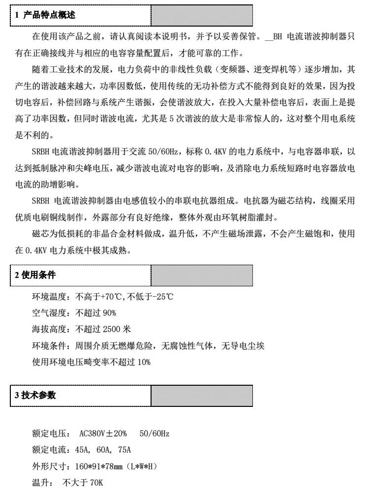 Power harmonic suppressor SRBH-60A capacitor cabinet replaces XD1 reactor with one year warranty SRBH80A