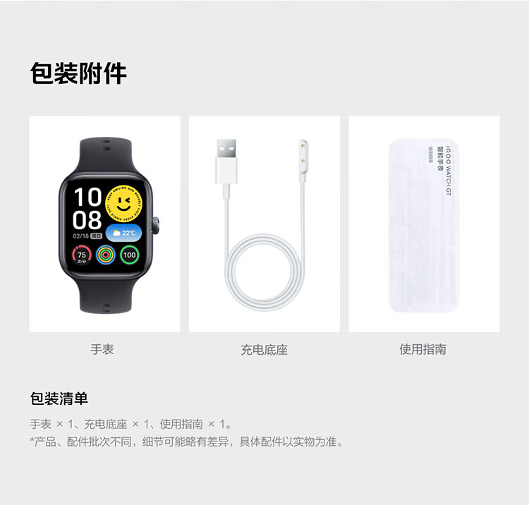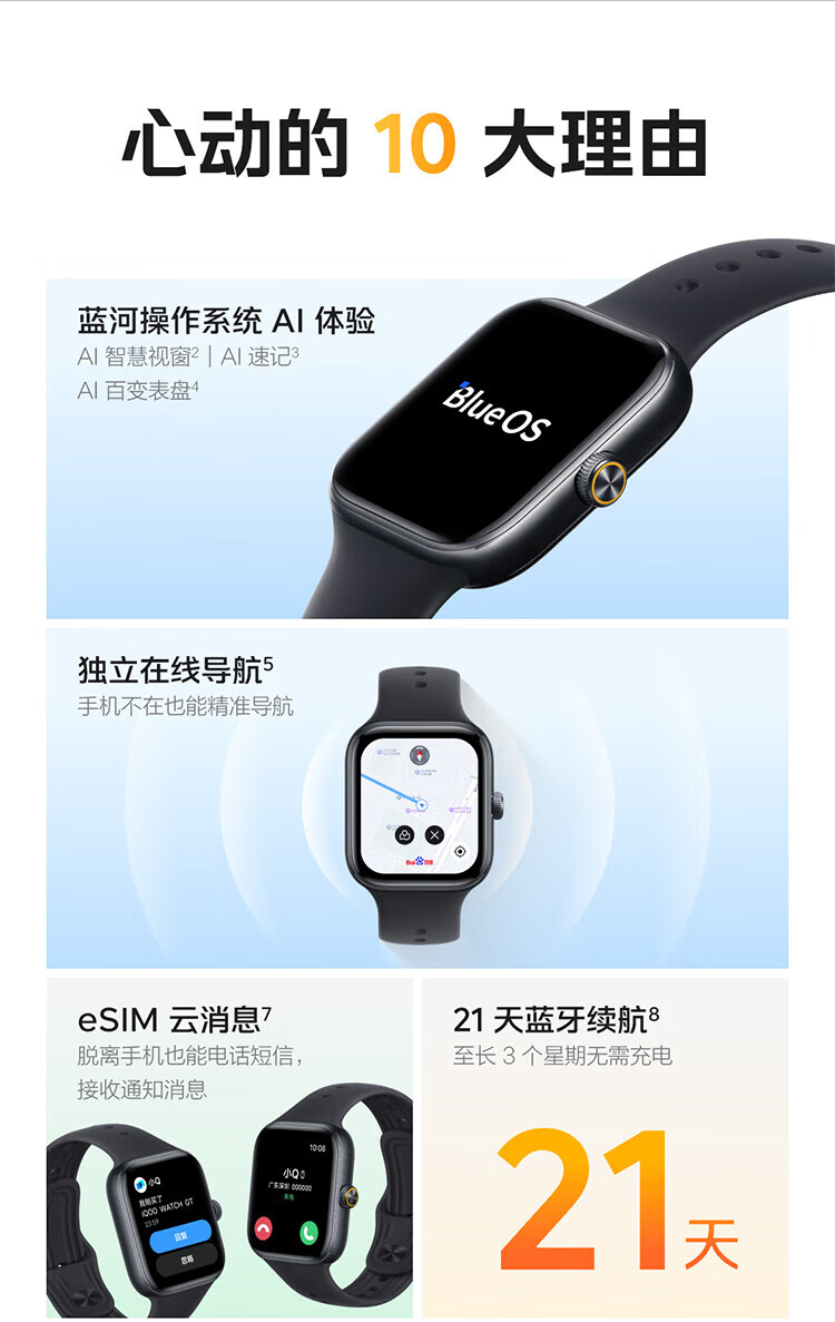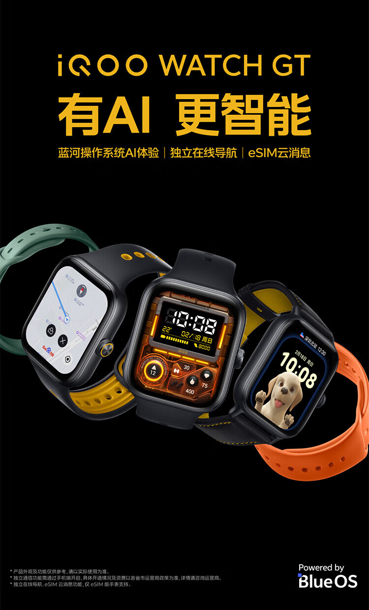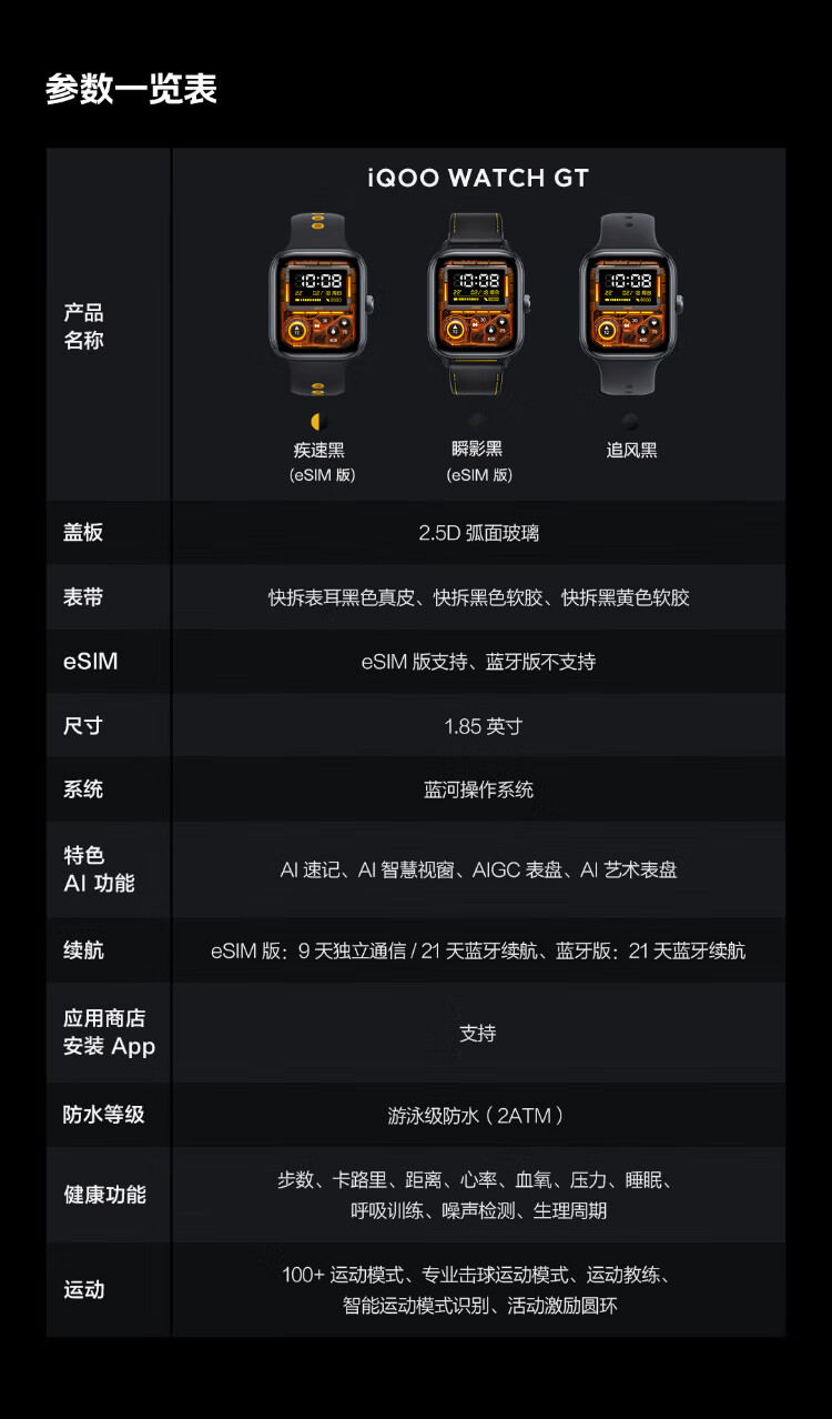 IQOO WATCH GT smart AI watch Blue River operating system map navigation 21-day long battery life sports and health heart rate monitoring phone watch bracelet wearable instant black eSIM version genuine leather