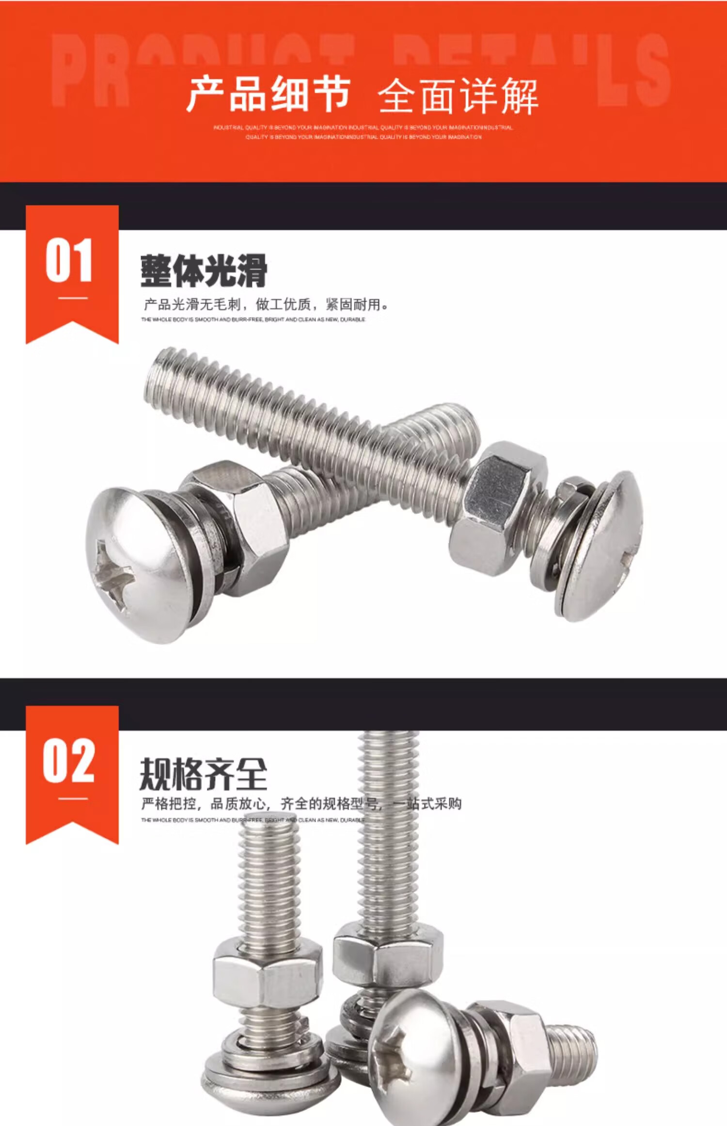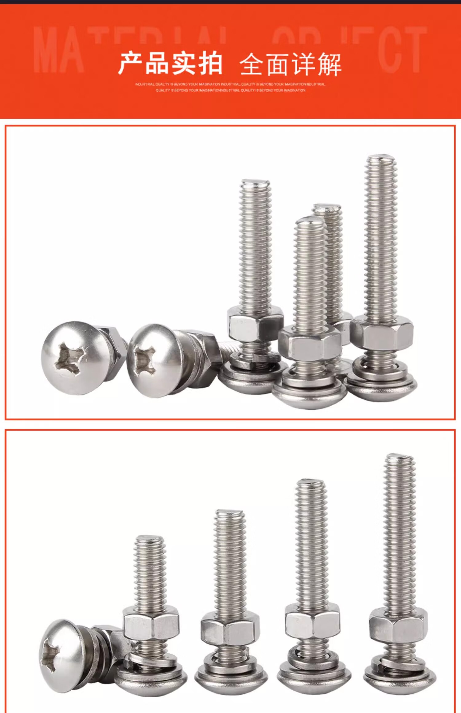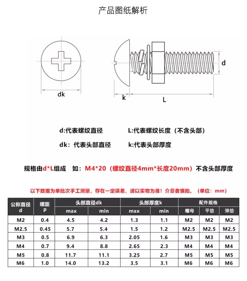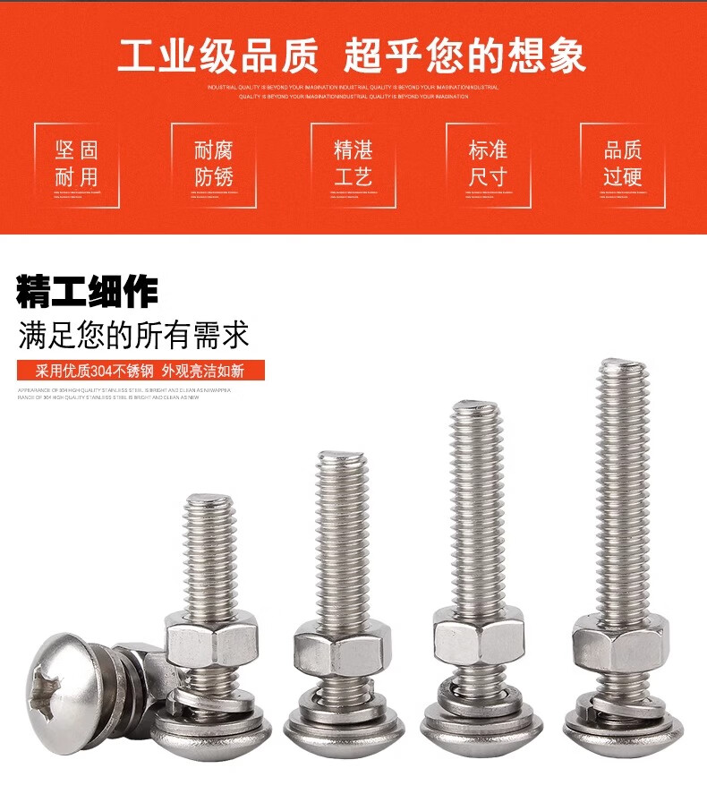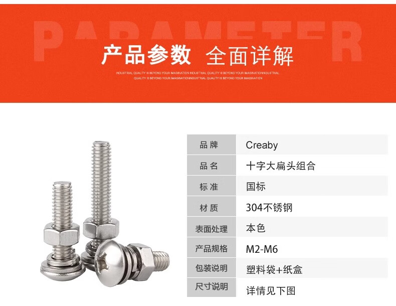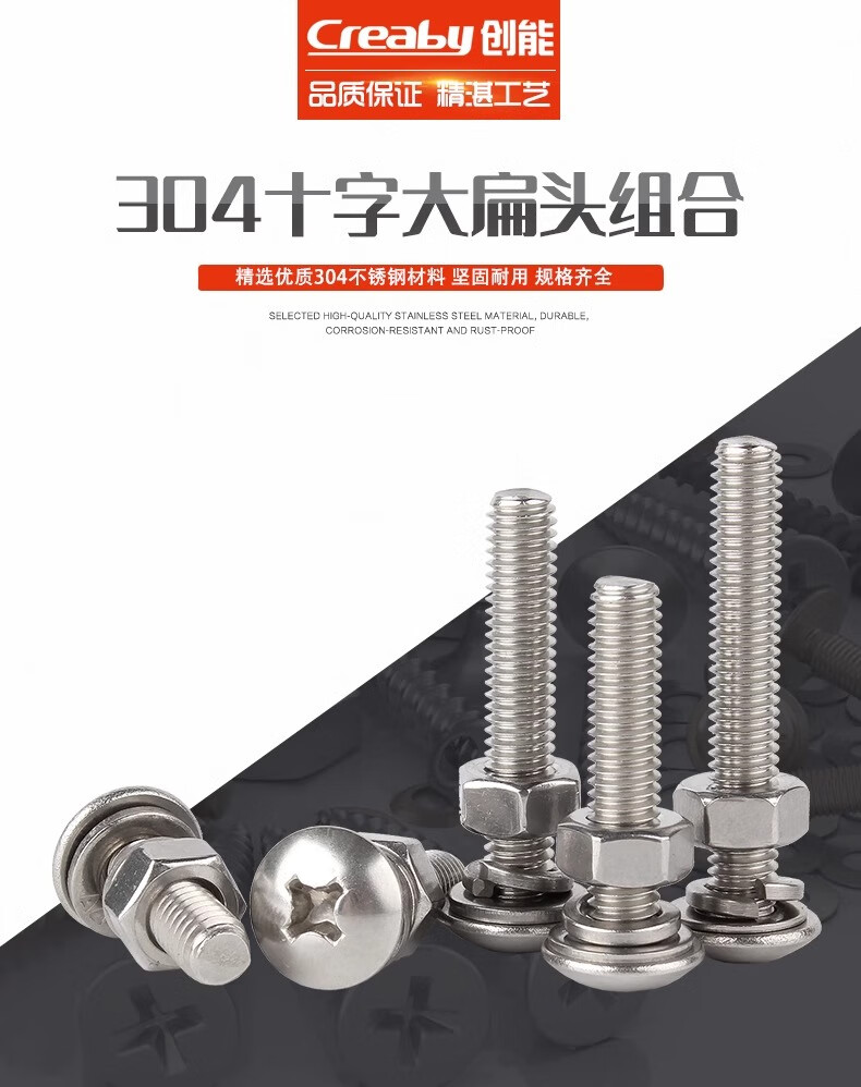Creaby304 stainless steel cross large flat head screw large umbrella head bolt screw nut combination set M4*45 (10 sets)