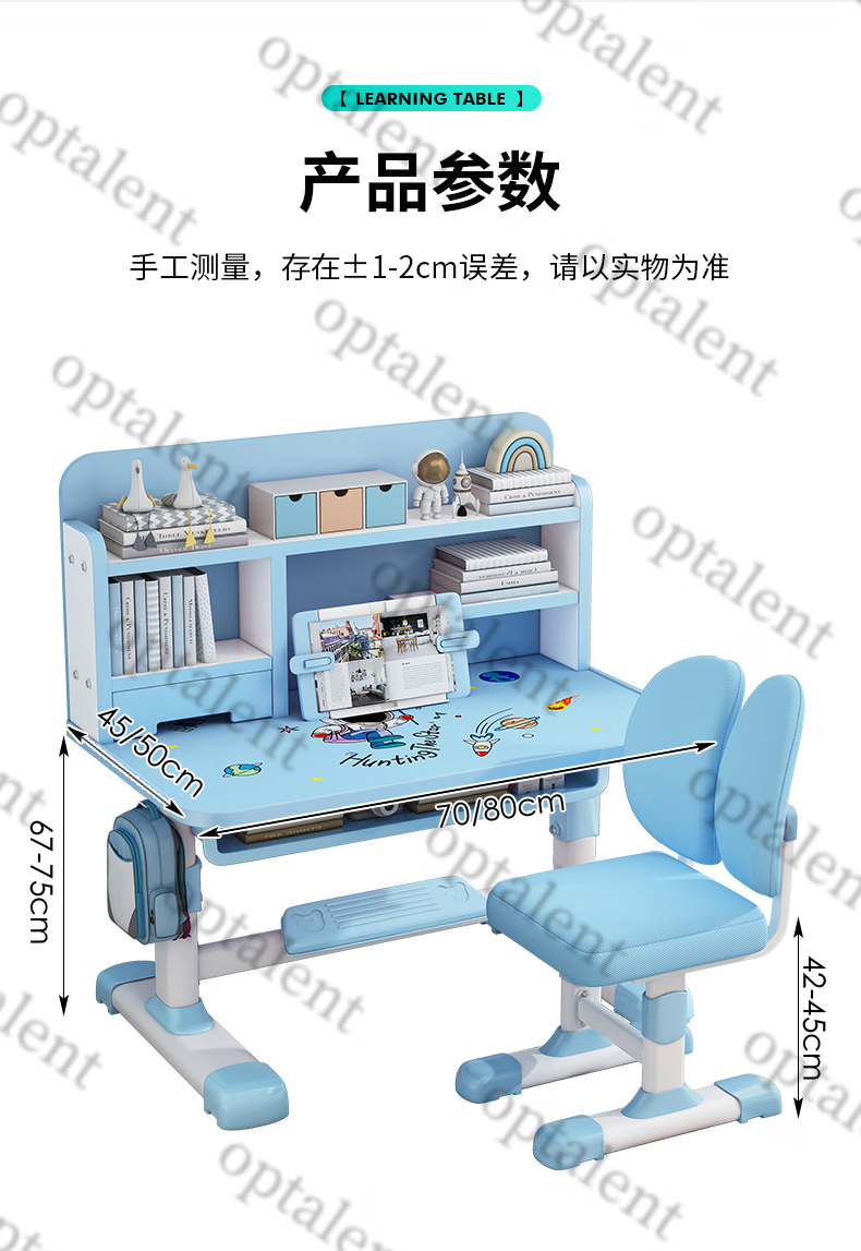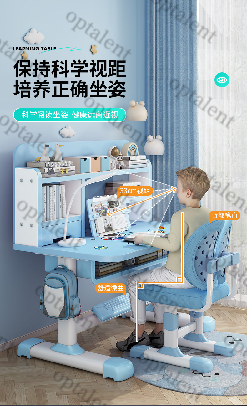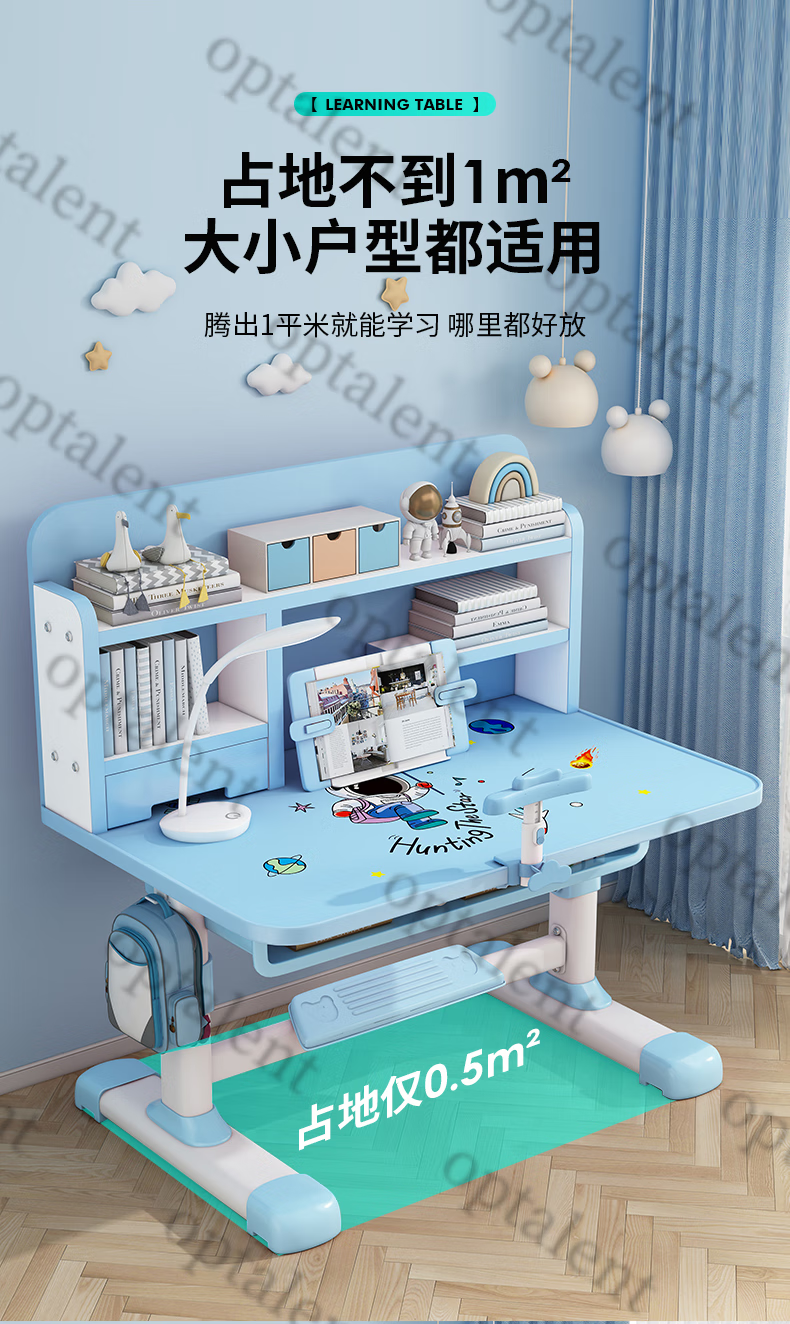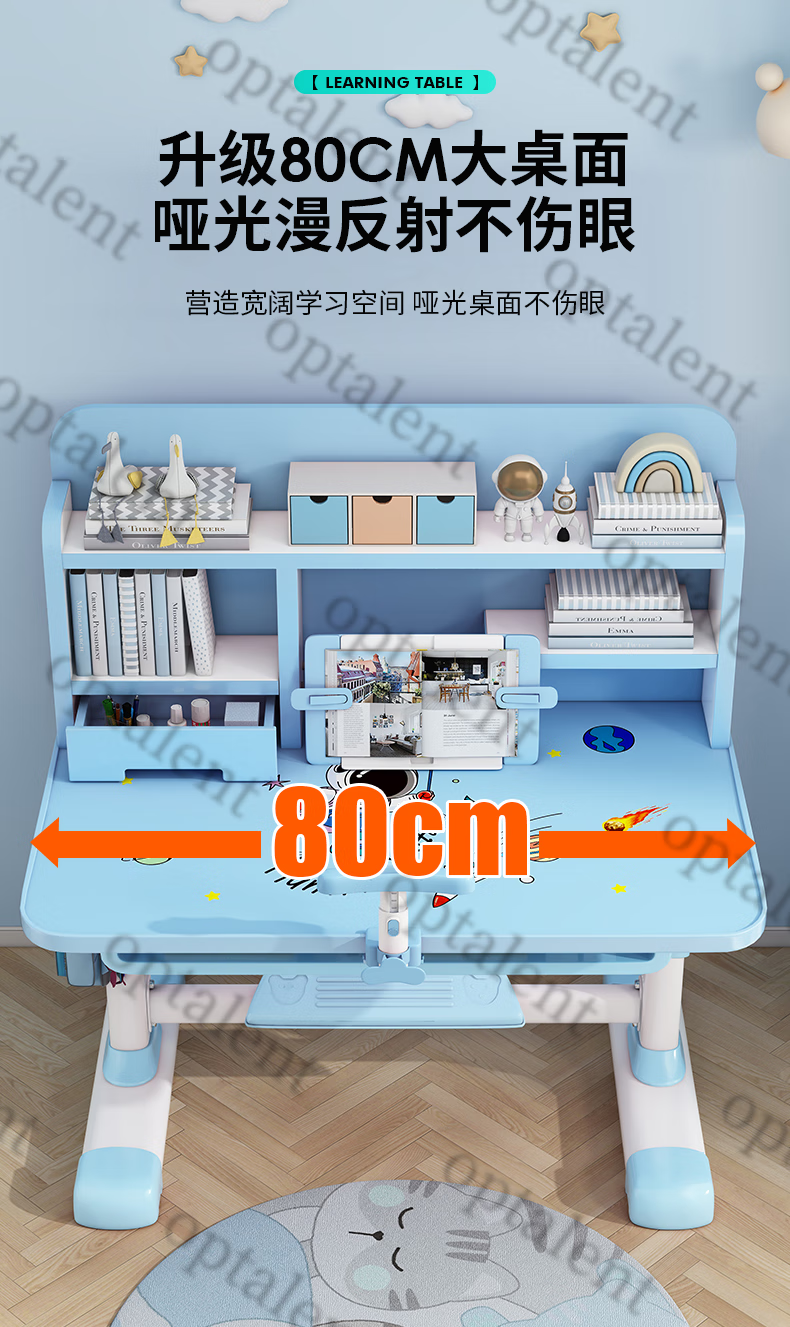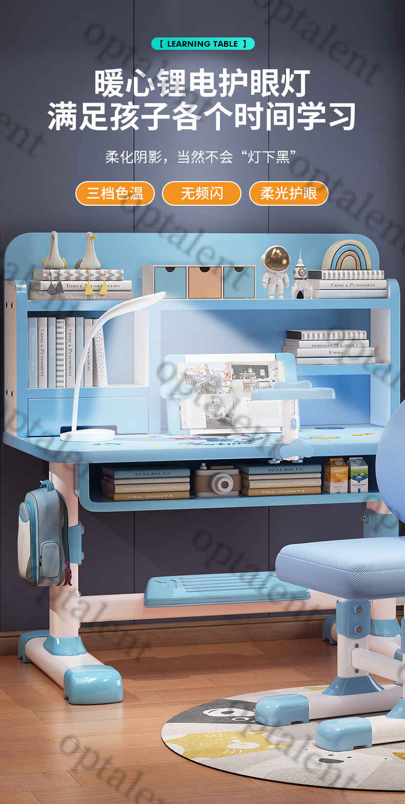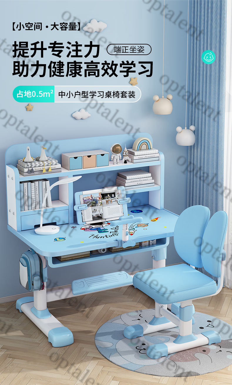 Qiaobaobao children's study table and chair set multi-functional lifting home bedroom boy and girl homework table primary and secondary school student desk Zhuangyuan blue 80cm table + three-layer heightened bookshelf