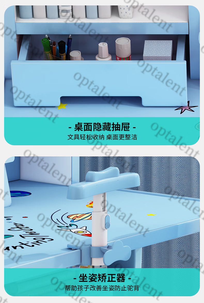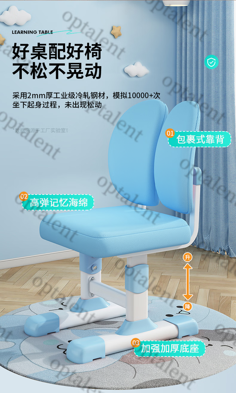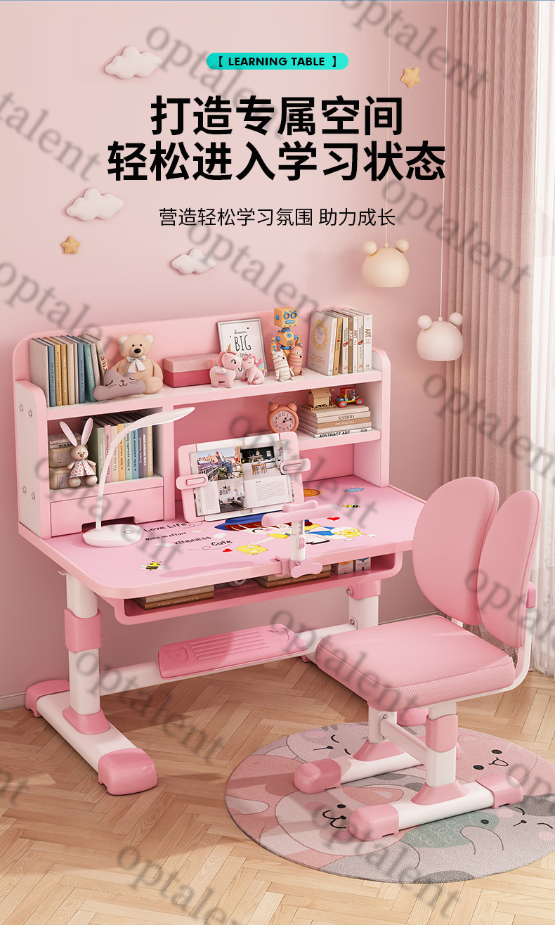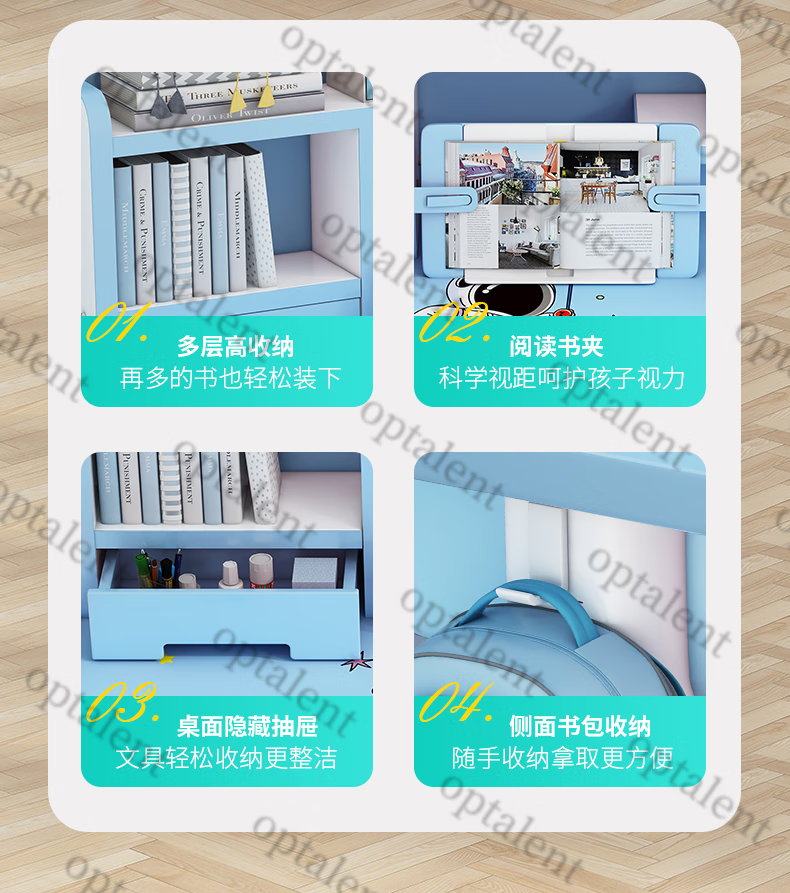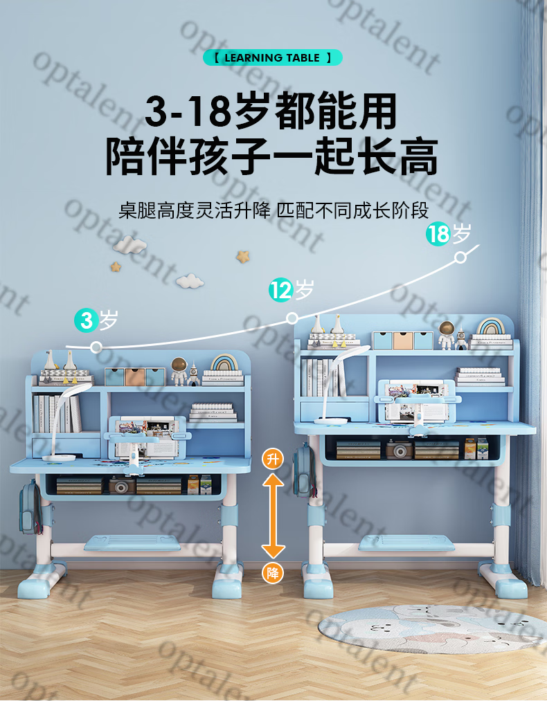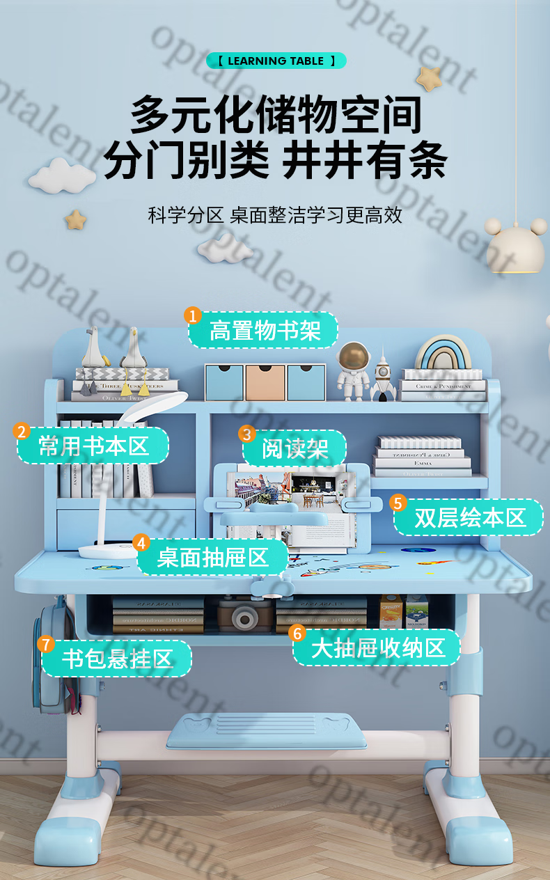 Qiaobaobao children's study table and chair set multi-functional lifting home bedroom boy and girl homework table primary and secondary school student desk Zhuangyuan blue 80cm table + three-layer heightened bookshelf