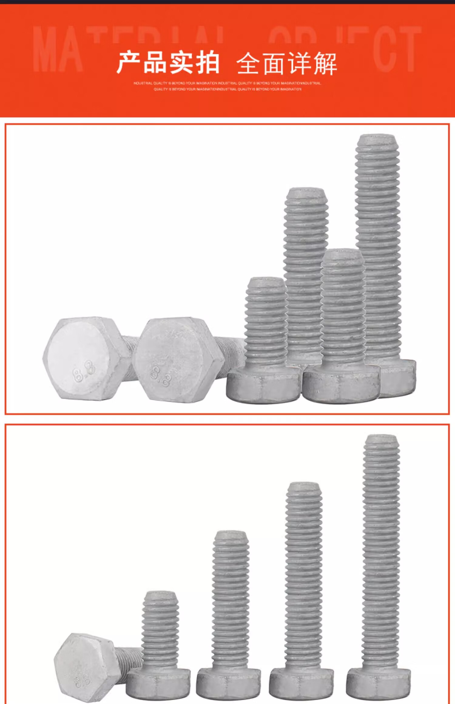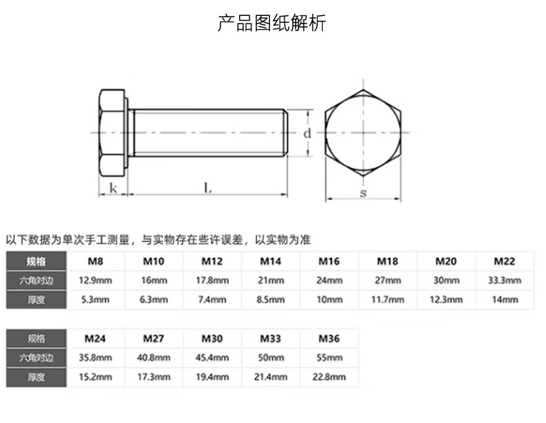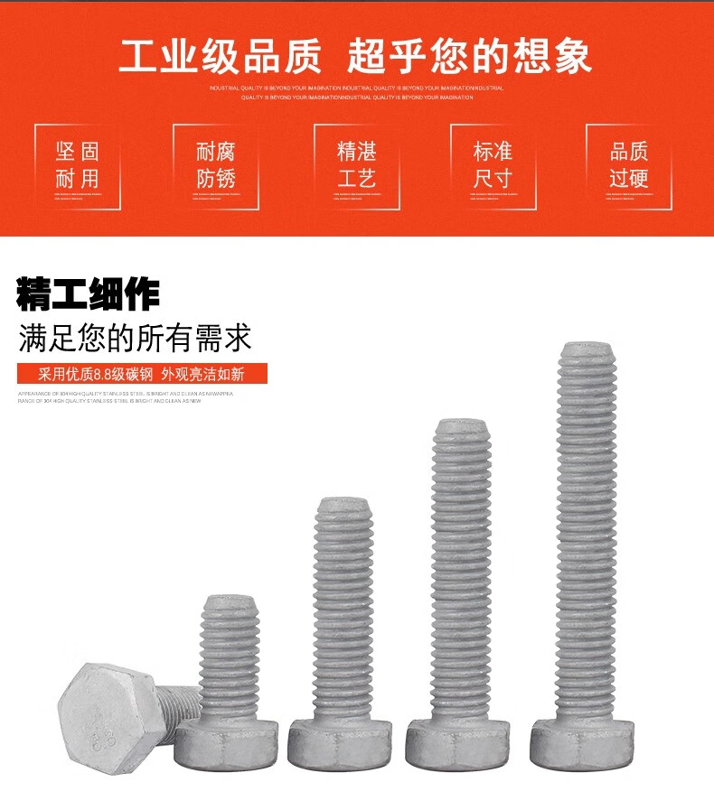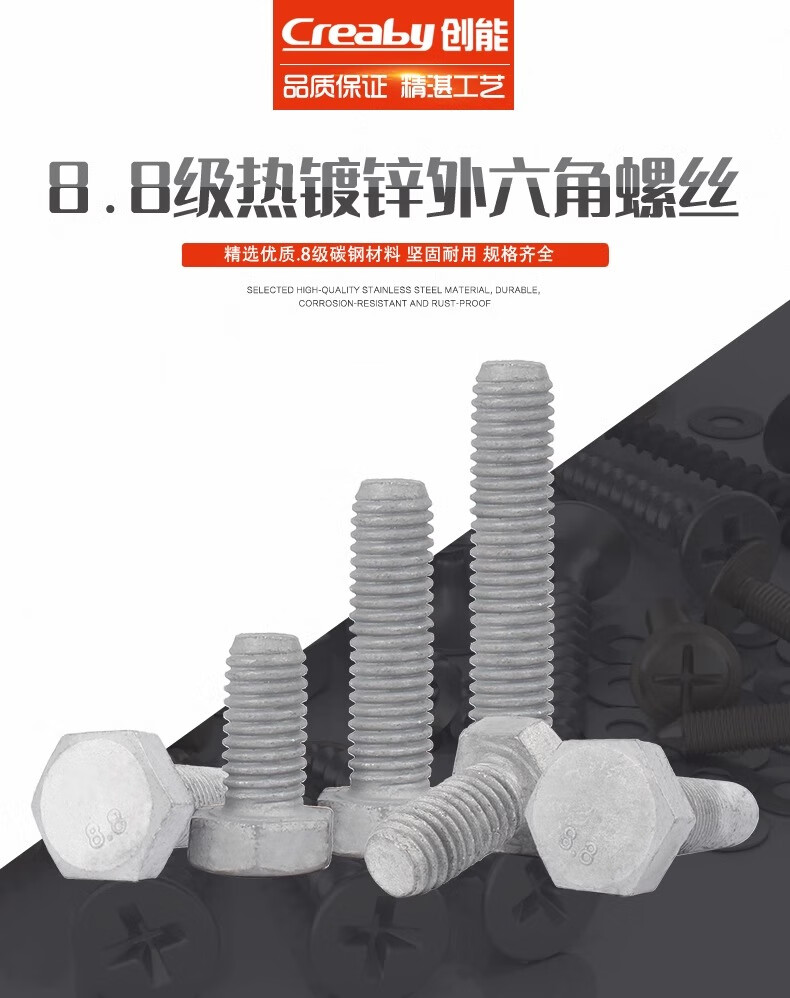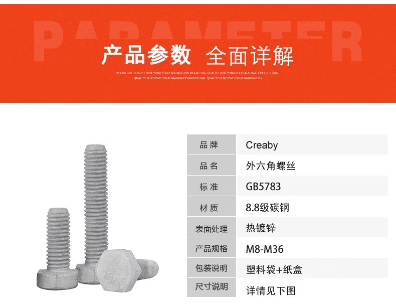 Creaby hot-dip galvanized screws 8.8 grade hot-dip galvanized external hexagonal screws iron tower power screw photovoltaic screws M16*65 (2 pieces)