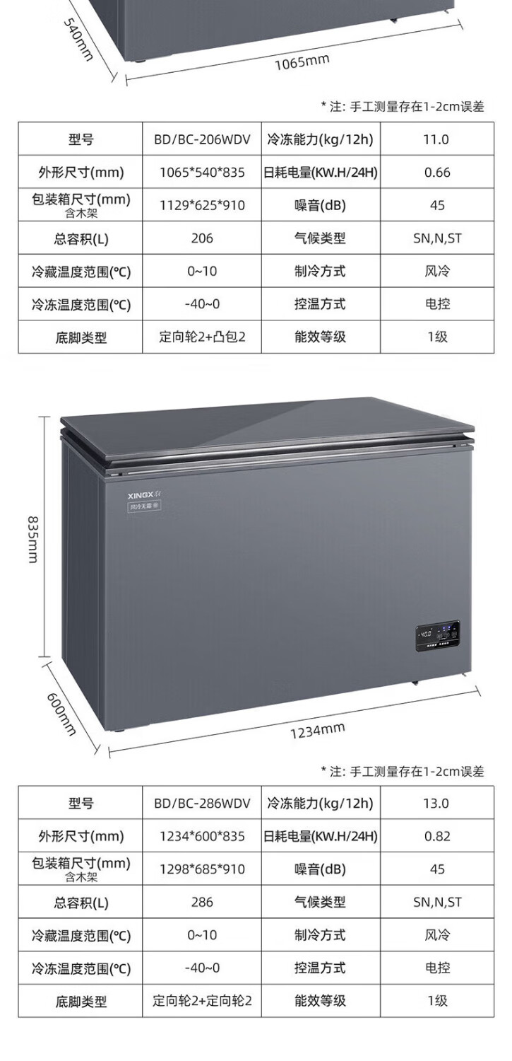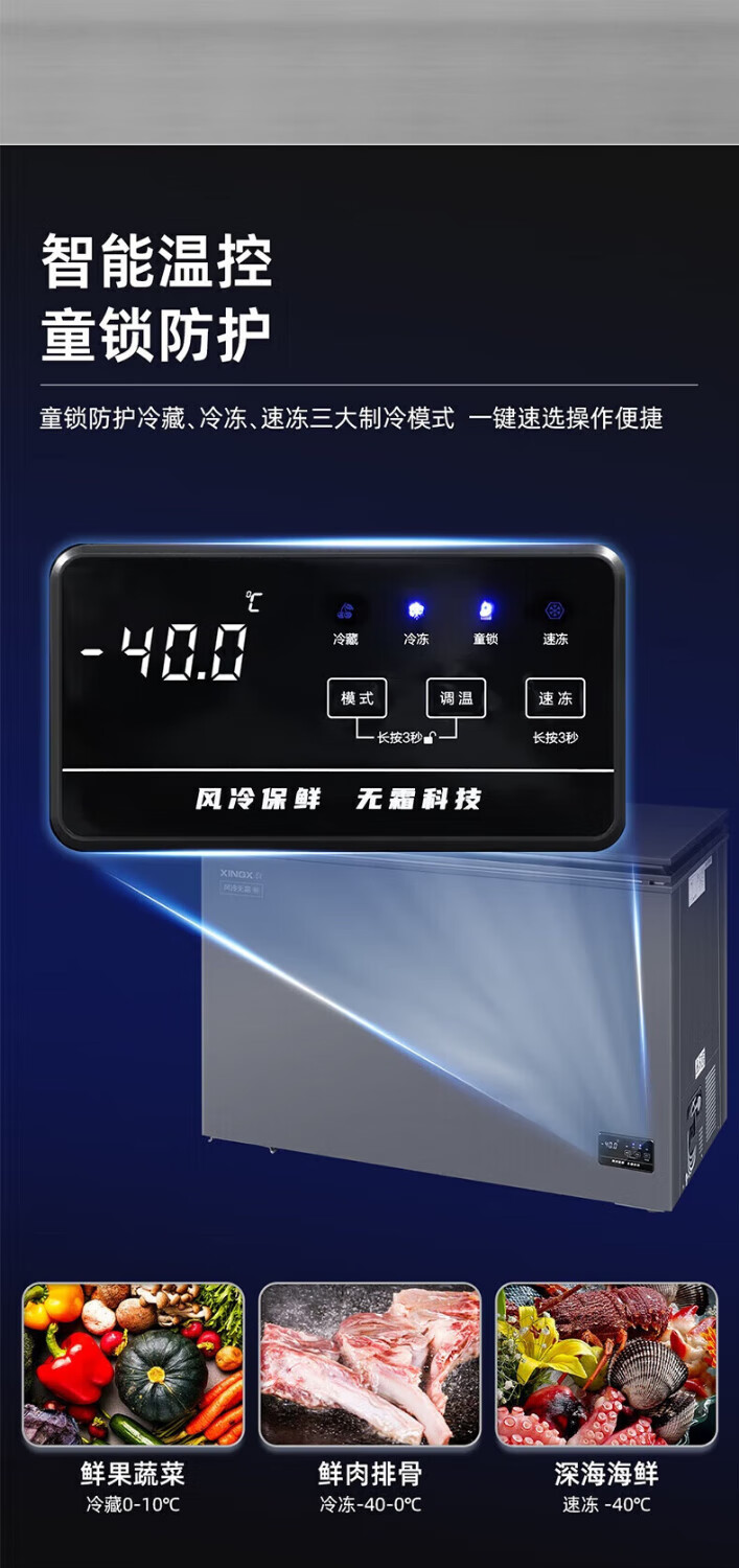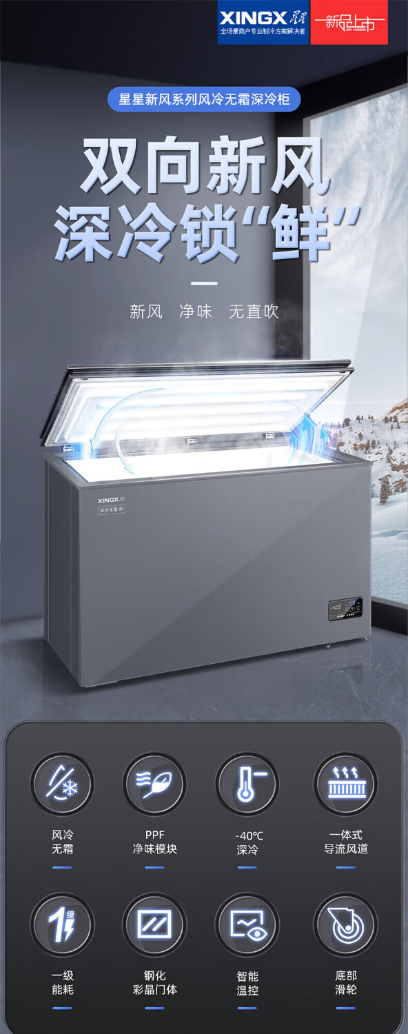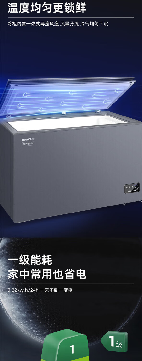 Xingx (XINGX) - 40 degree deep freezing freezer WDV household horizontal air-cooled frost-free odor-free refrigerator small commercial freezer single-temperature fresh-keeping cabinet top-opening horizontal refrigerator first-class energy efficiency freezer - 40 degrees low temperature first-class energy efficiency air-cooled frost-free 206WDV