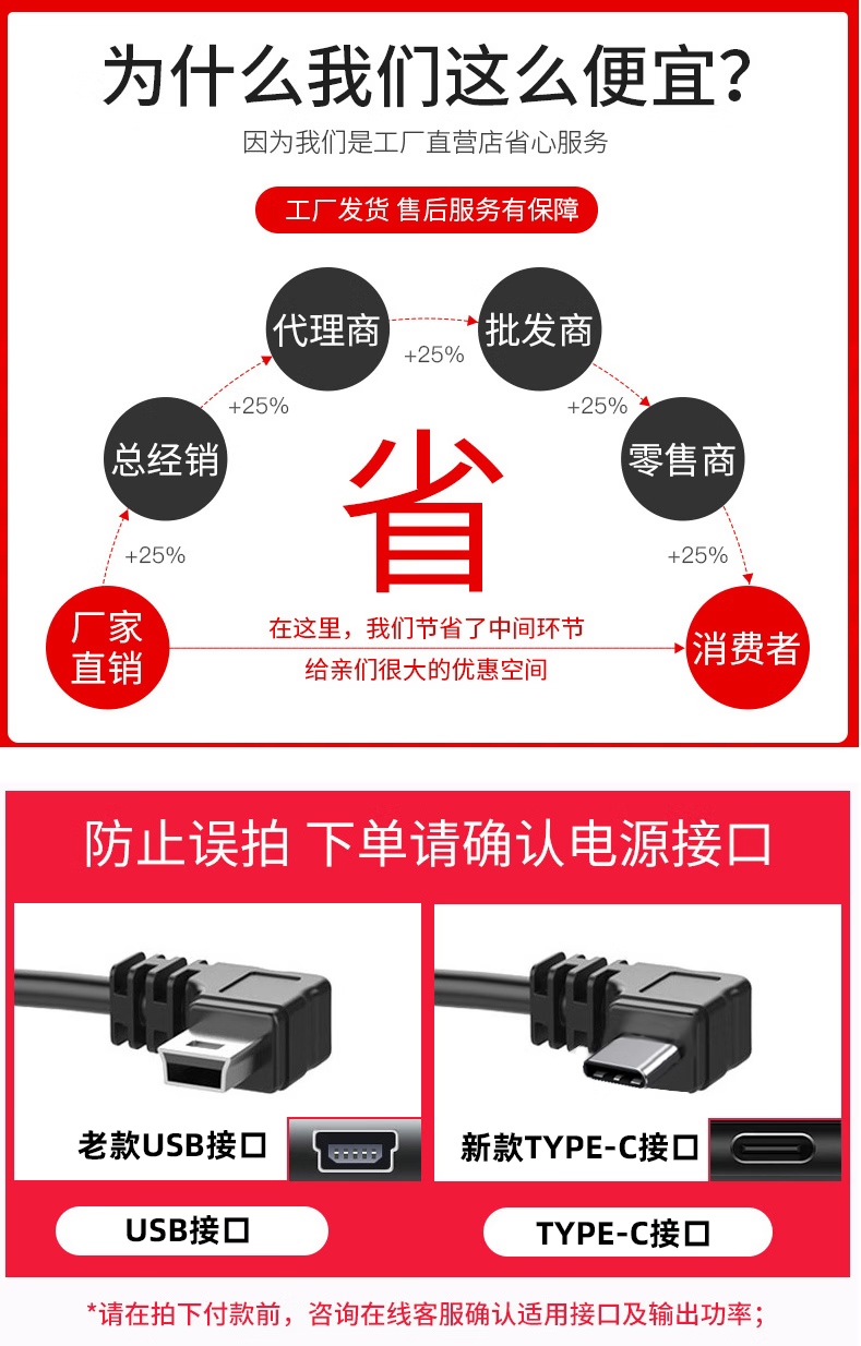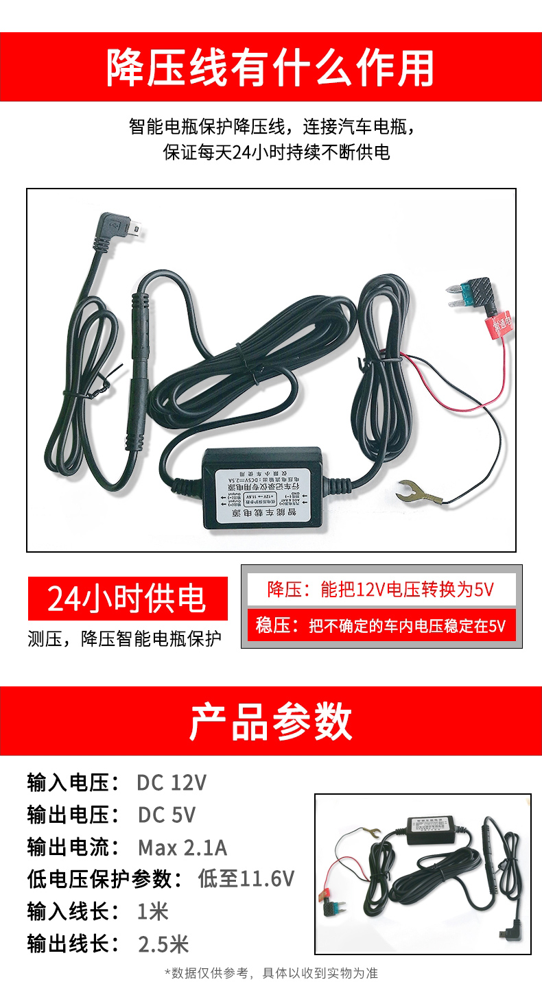 Dingweite driving recorder monitoring cable/USB cable-free/dedicated high-speed memory card USB three-wire step-down cable (12-24V) 3A