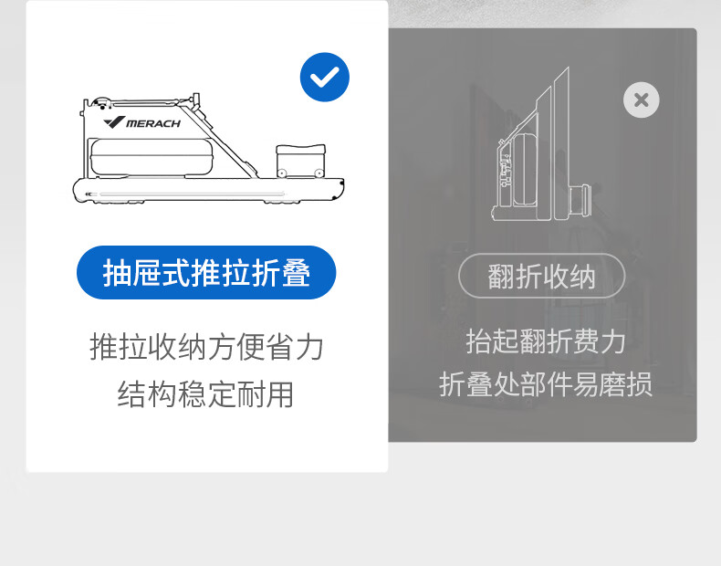 MERACH rowing machine, household foldable hydromagnetic dual-resistance fitness equipment, fat-burning comprehensive training boat slider 950, upgraded 10-blade PRO丨double fat-burning course丨