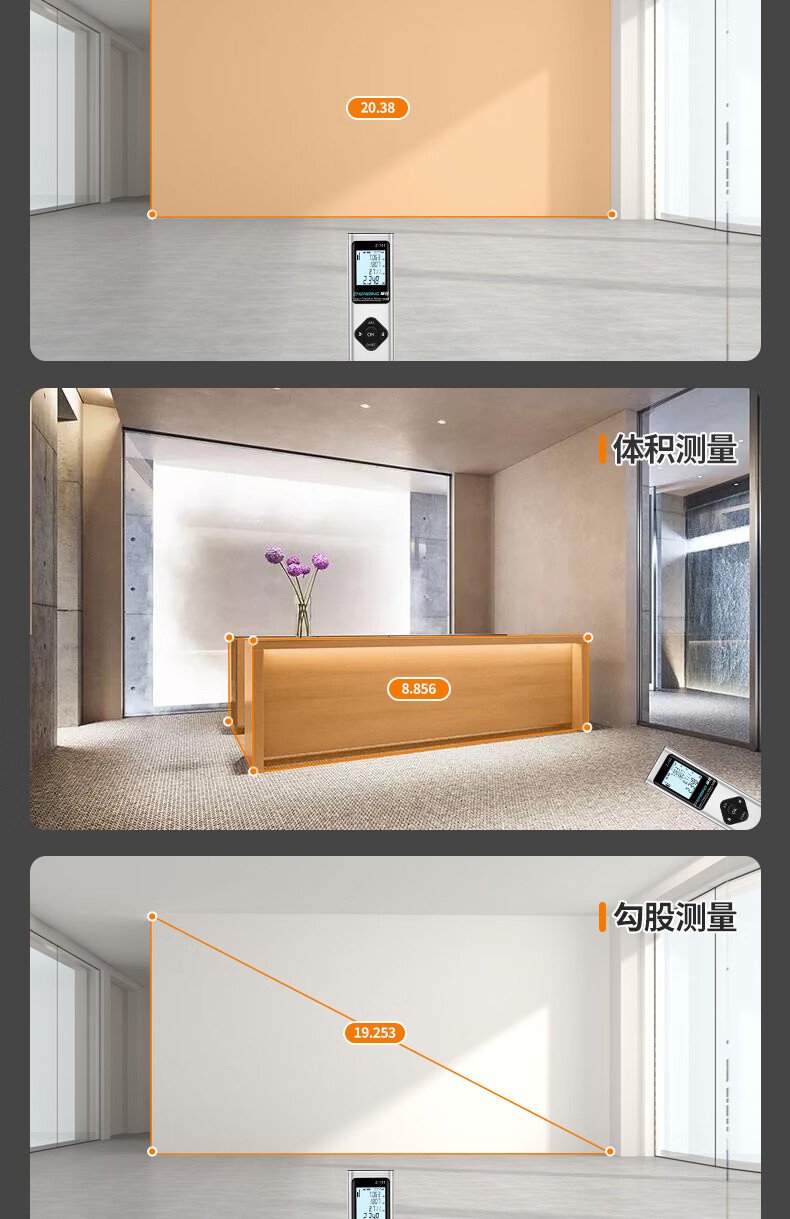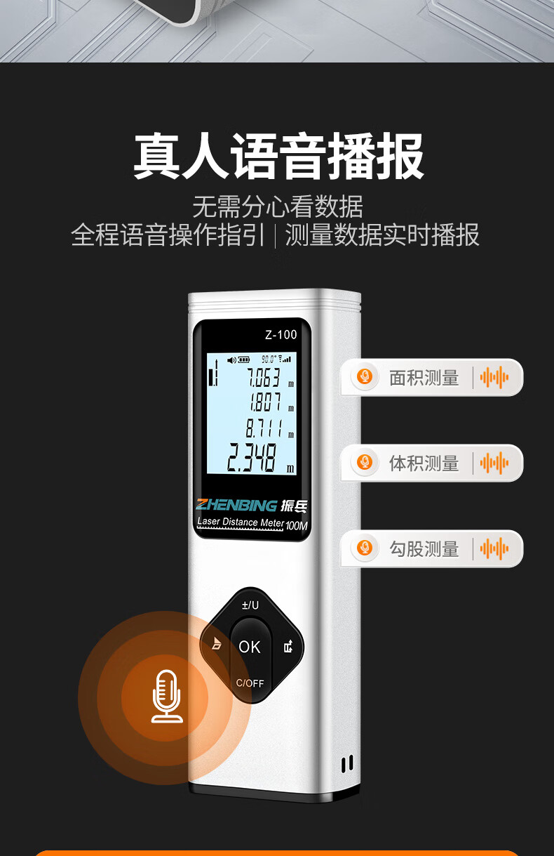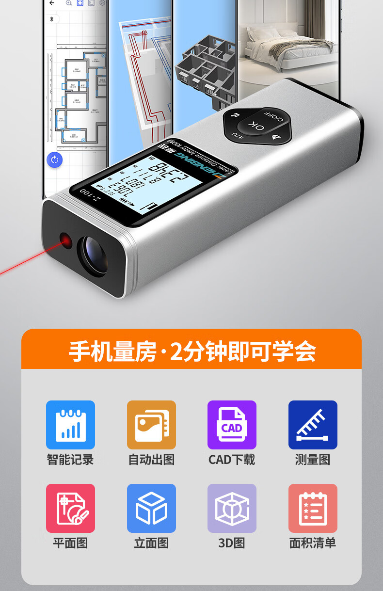 Zhenbing laser range finder infrared measuring ruler Jiayi Measurement Drawing Bluetooth room measuring instrument high-precision room measuring artifact 60 meters + laser cross + level + voice + Bluetooth