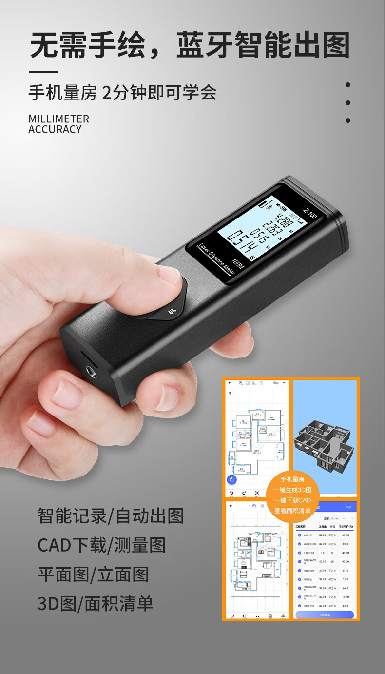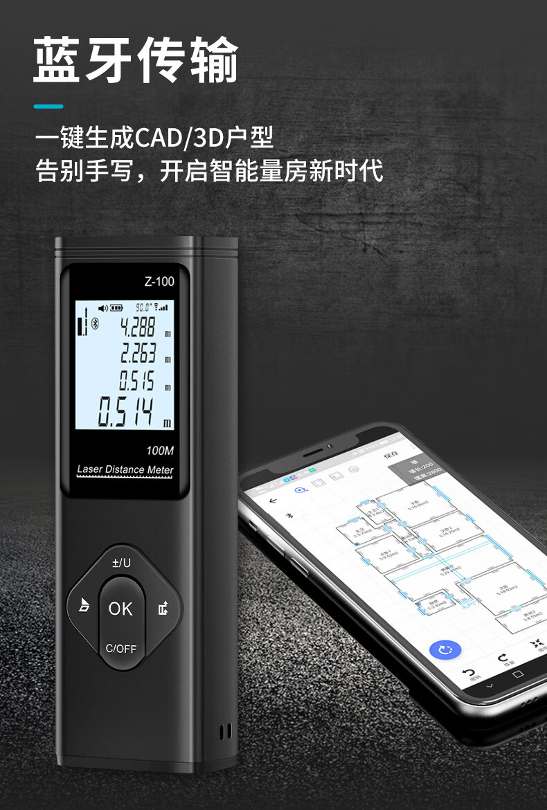 Ou Xiaojiang infrared laser distance meter Jiayiliang CAD drawing room measuring instrument measuring instrument high-precision electronic ruler 60 meters + CAD measuring room drawing + electronic angle + voice