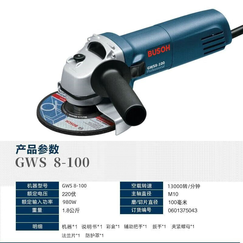 BUSOH doctor's angle grinder GWS8-100 high-power cutting and polishing machine electric hand-held multi-function tool German 8-100 original factory standard