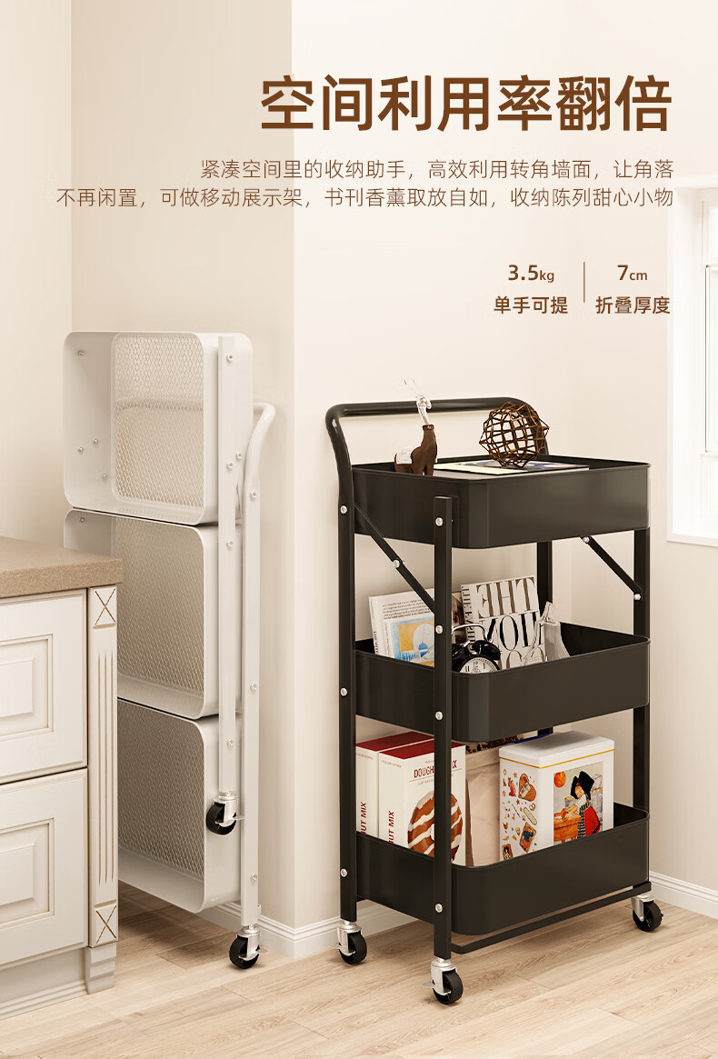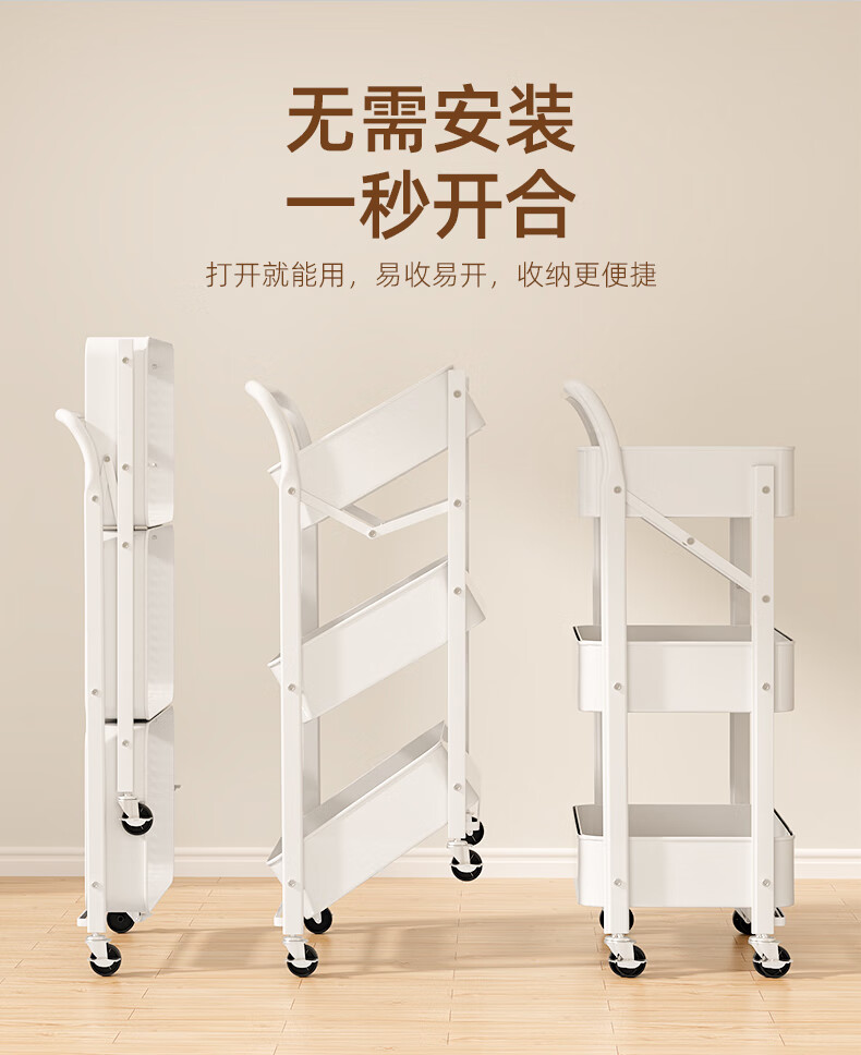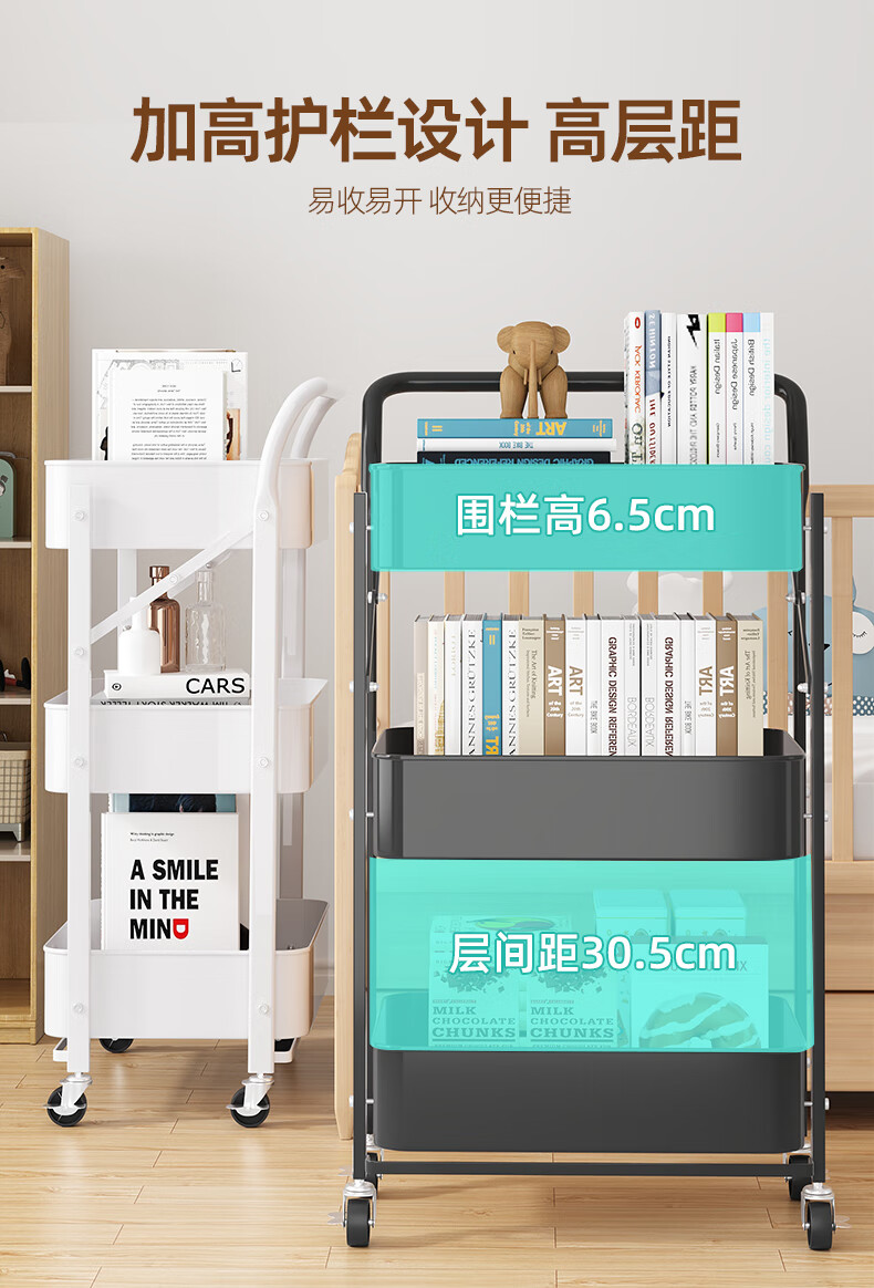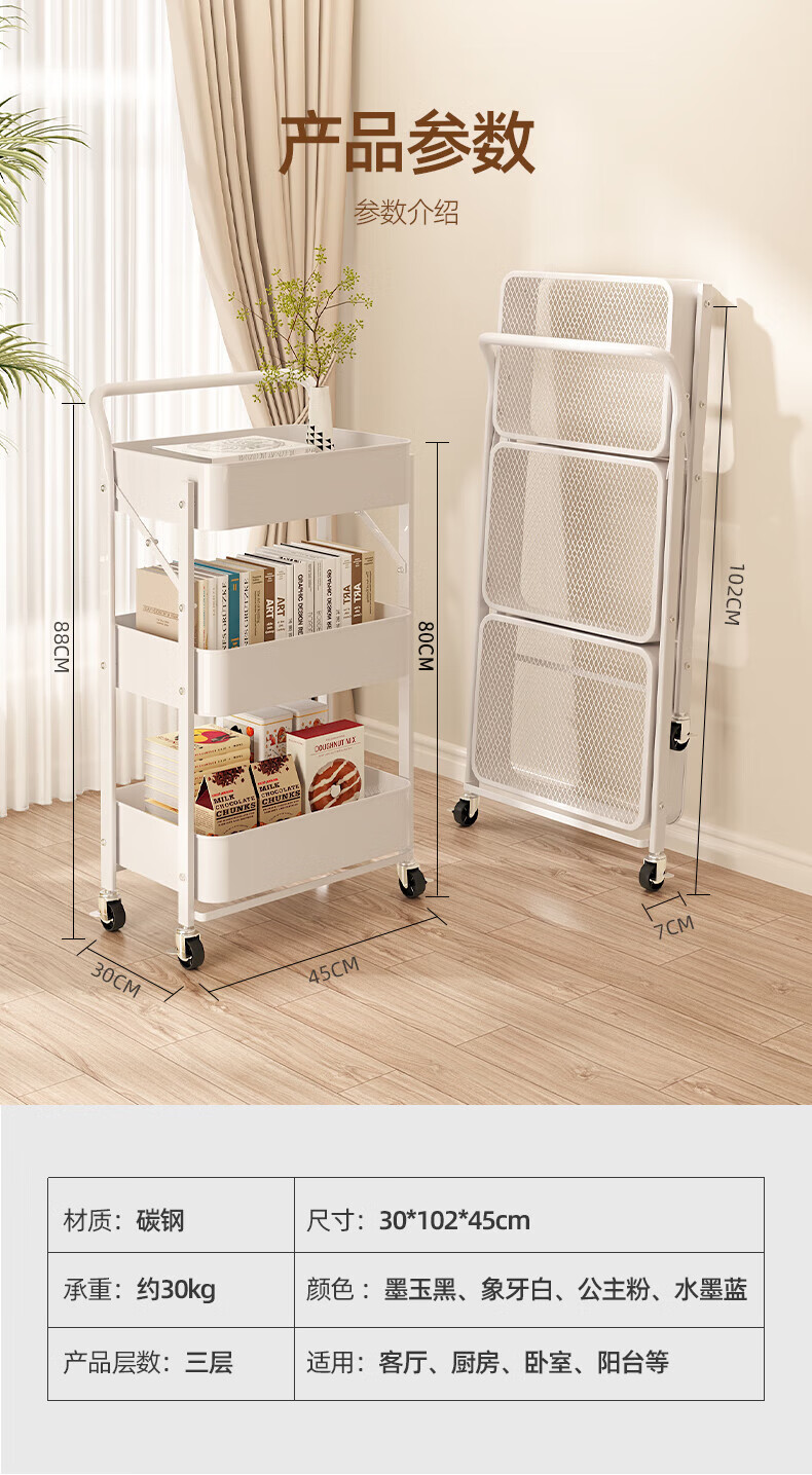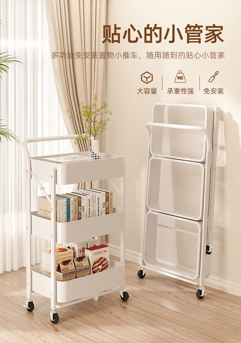 Selected movable bookshelf folding storage rack no installation required floor cart snack rack dormitory multi-layer storage rack small bookshelf three layers ivory white no installation foldable