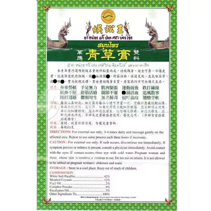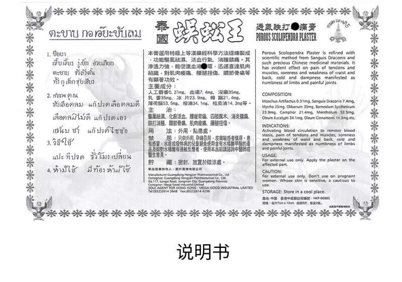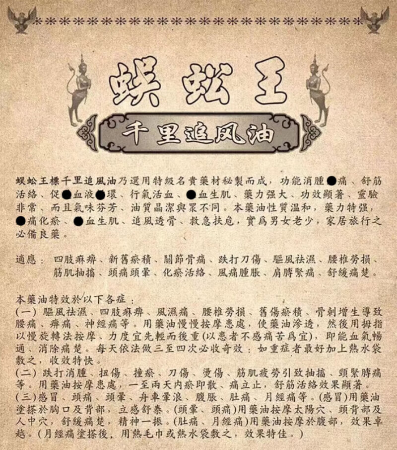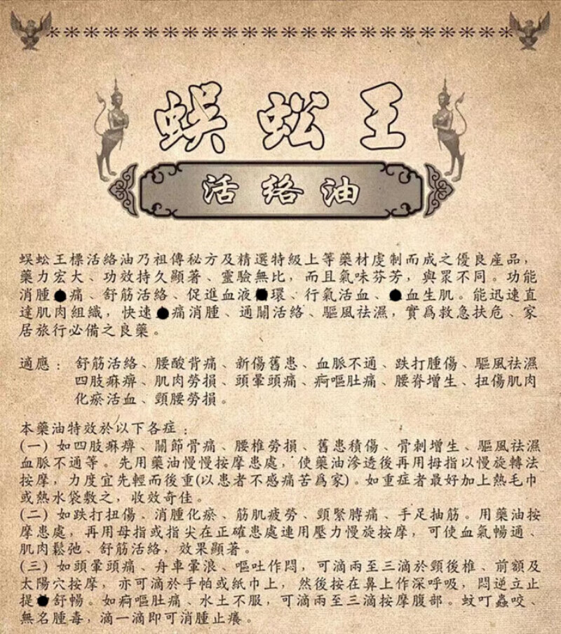 Centipede King Hong Kong Original, numb limbs, bruises, sprains, inflammation, back pain, paralysis of hands and feet, expels wind and removes dampness, Thai Centipede King Bone Pain Spirit Oil