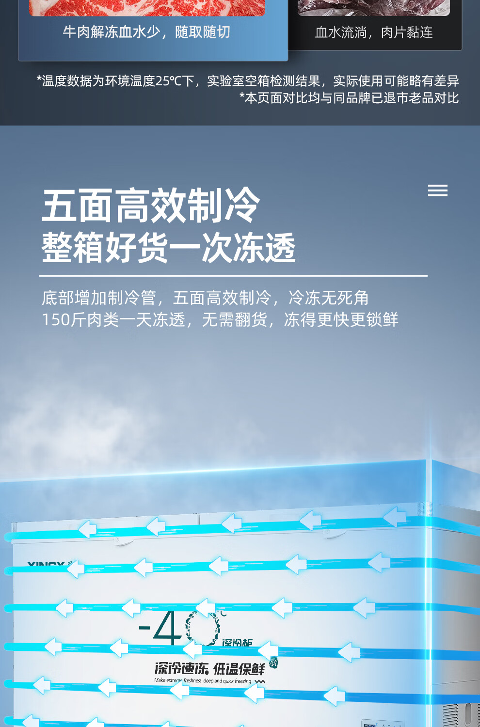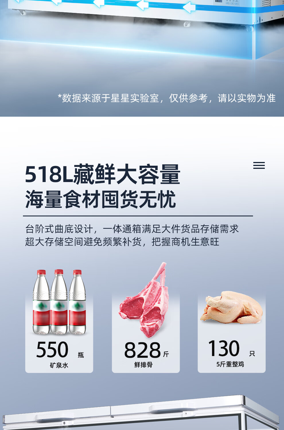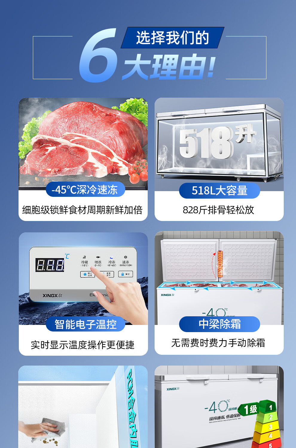 Xingx (XINGX) refrigerated and frozen single temperature conversion-40 ultra-low temperature cryogenic large capacity 358 liters freezer seafood salmon quick-frozen fresh-keeping household refrigerator deep freezer -40丨Computer temperature control丨With lock 718 liters
