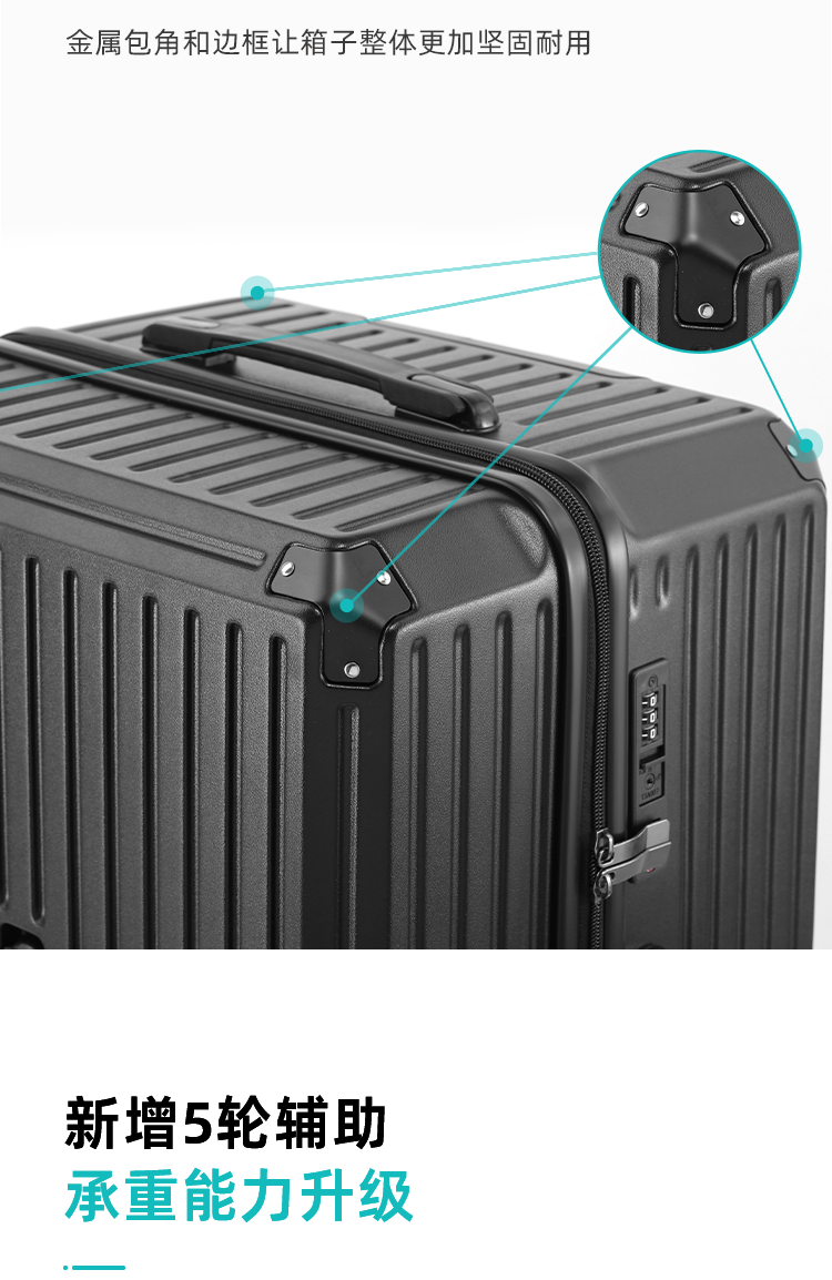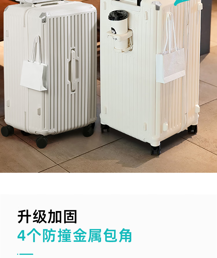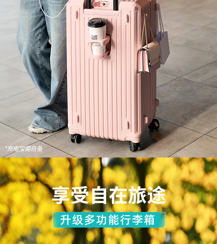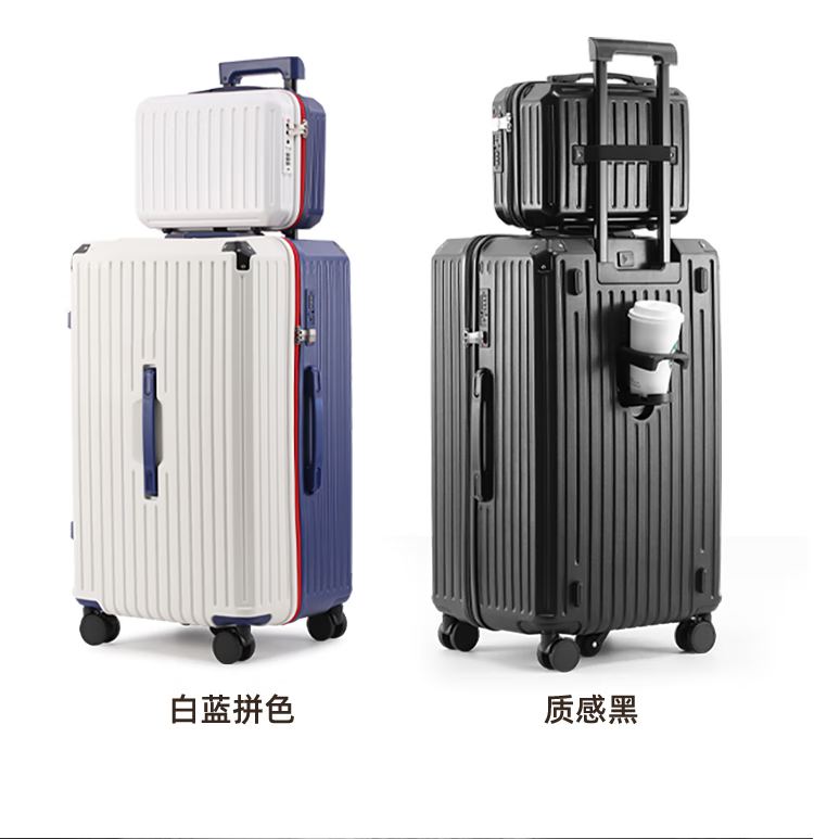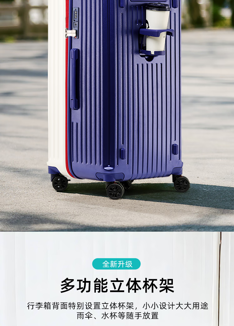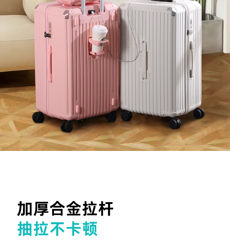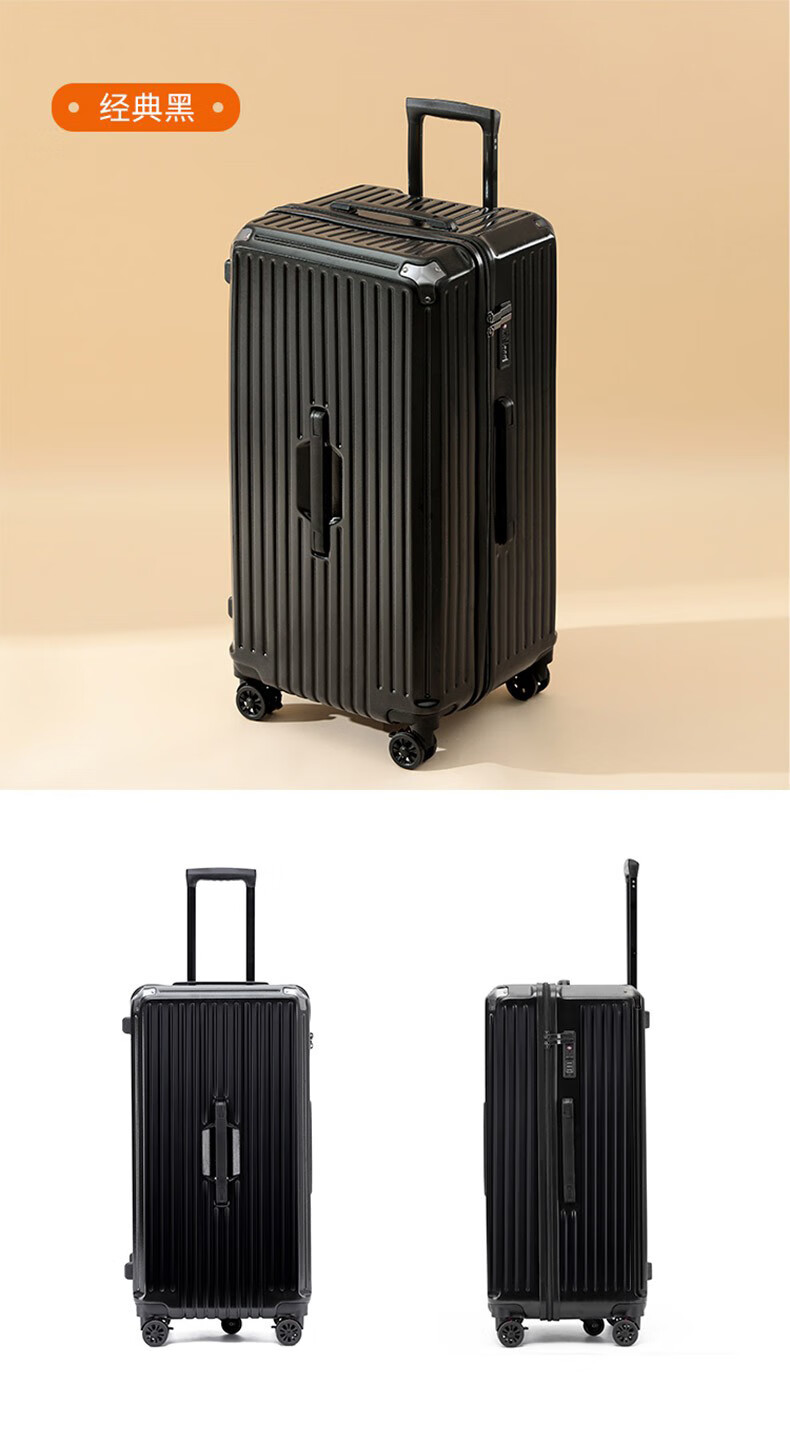 EAZZ 5-wheel load-bearing + lightweight, thickened and large-capacity luggage suitcase for men and women, trolley bag, student password box, suitcase, USB charging port + water cup holder + hook, black, 28-inch C-type, 5-wheel load-bearing, need to be checked and moved