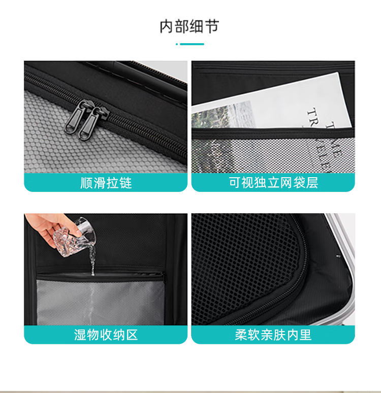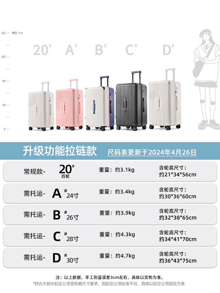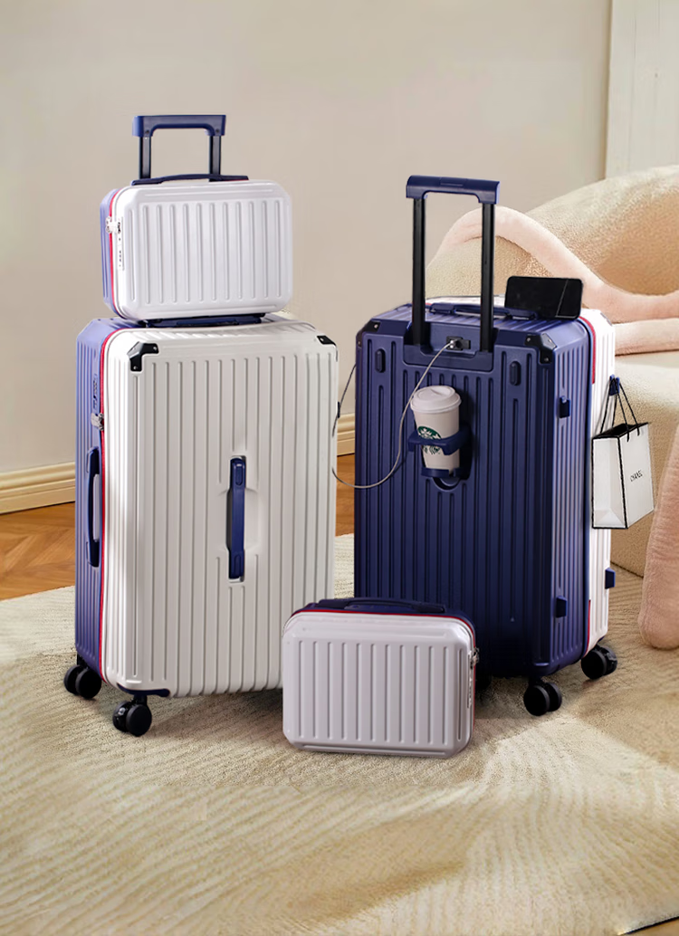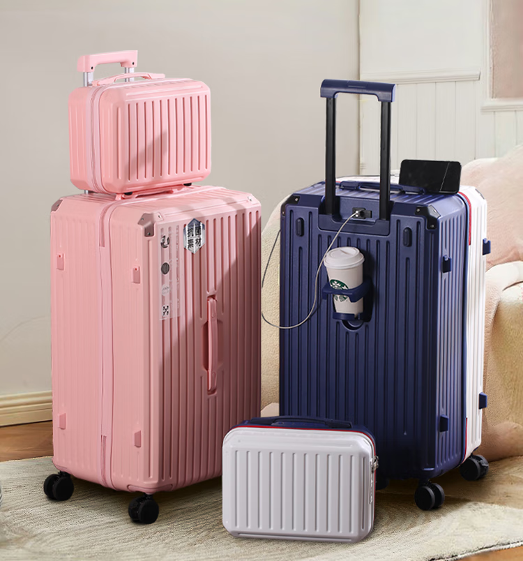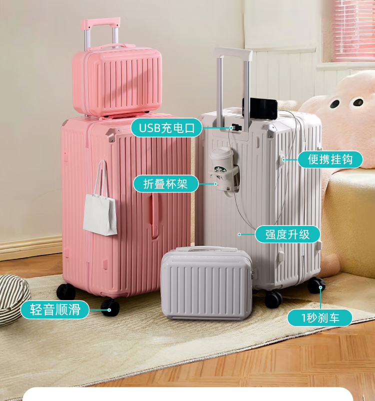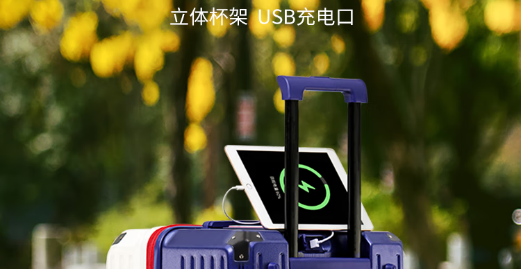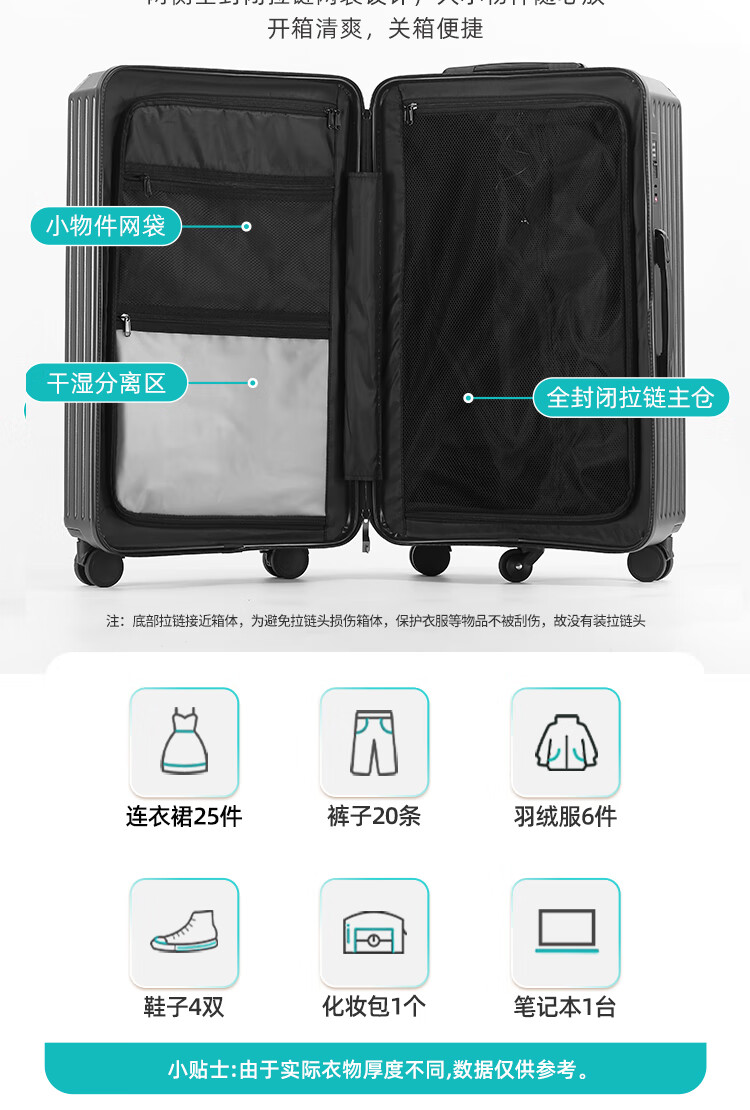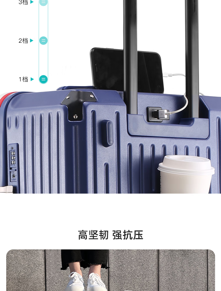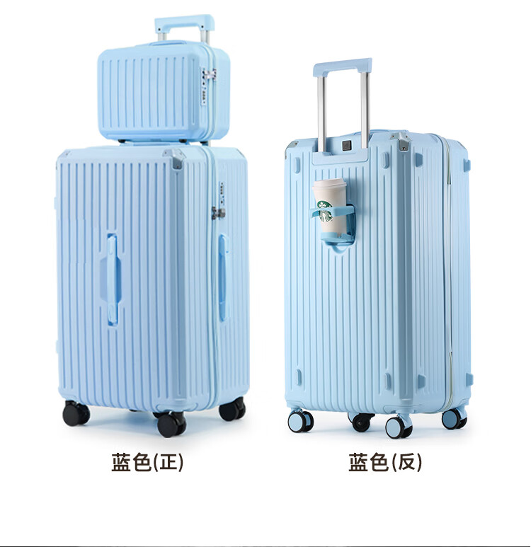 EAZZ 5-wheel load-bearing + lightweight, thickened and large-capacity luggage suitcase for men and women, trolley bag, student password box, suitcase, USB charging port + water cup holder + hook, black, 28-inch C-type, 5-wheel load-bearing, need to be checked and moved