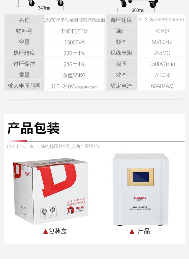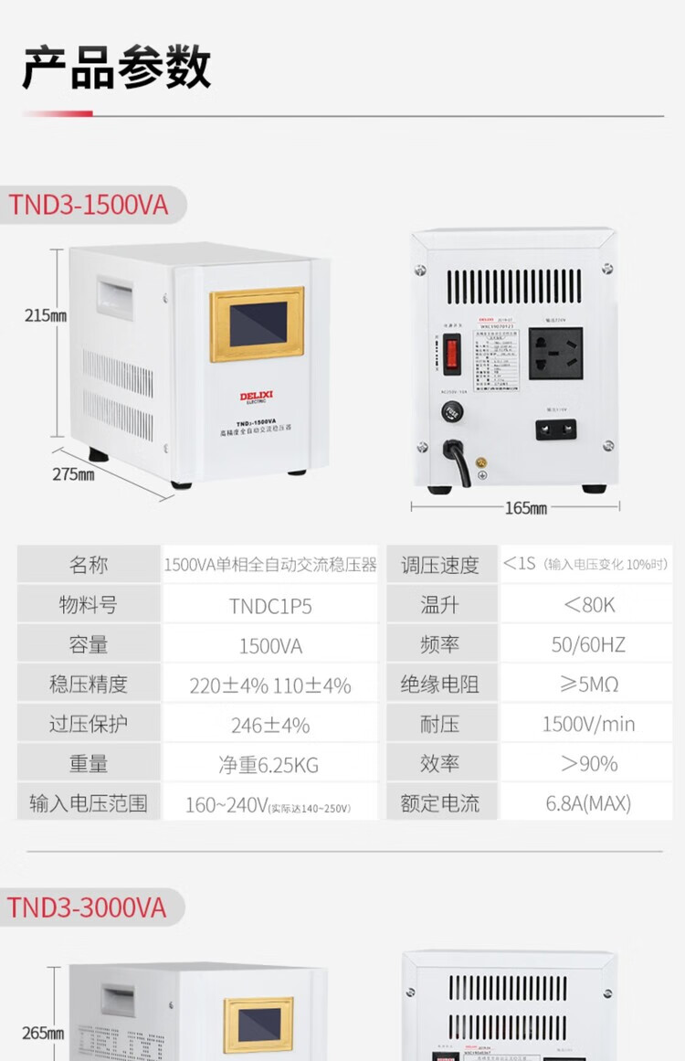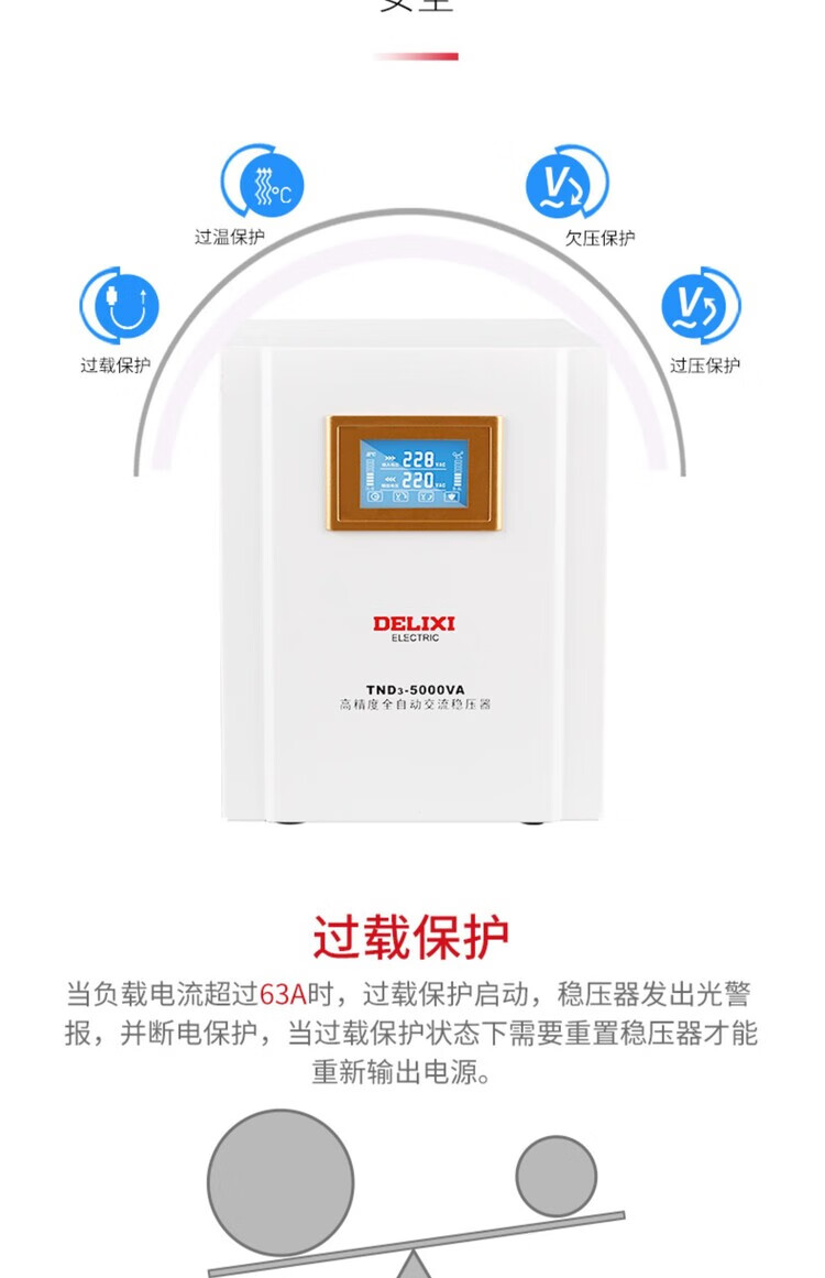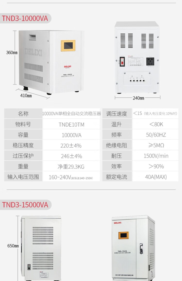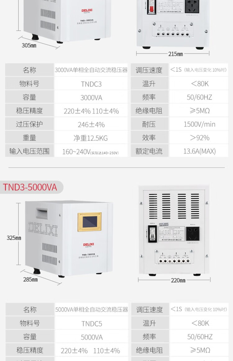 DELIXI ELECTRIC Delixi voltage regulator TND3 single-phase 220V fully automatic household LCD digital display lightning protection air conditioning refrigerator power supply TND3 10KW