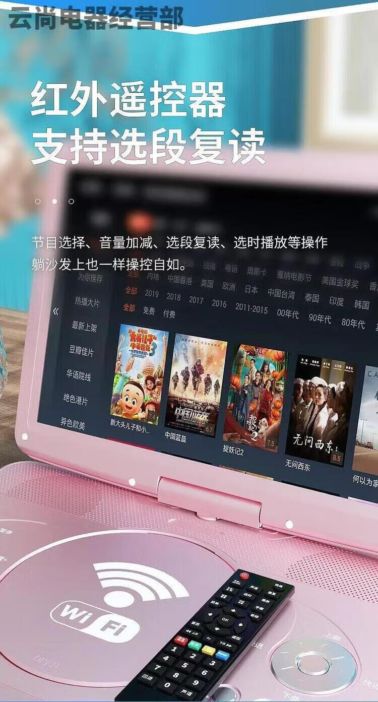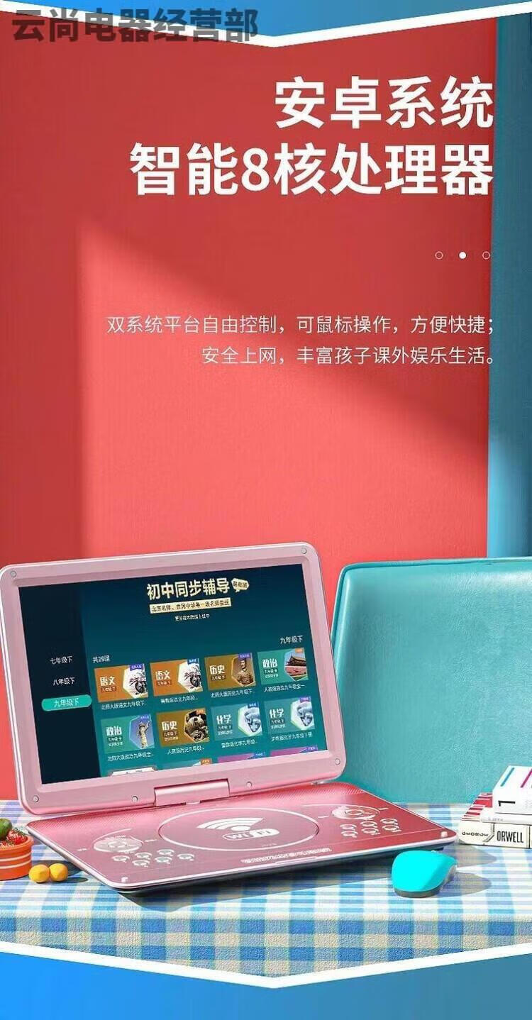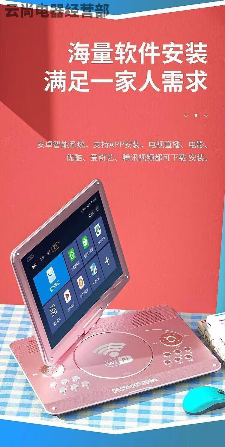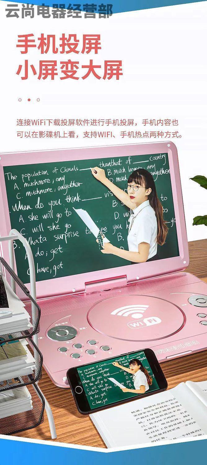 NINTAUS mobile DVD player, portable EVD player, high-definition integrated CD/VCD player for children and the elderly, black 15-inch new high-definition screen mobile DVD player