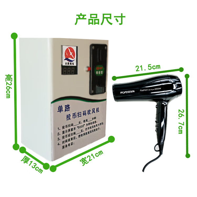 Self-service coin-operated hair dryer bathroom high-power high school campus swimming pool scan code shared hair dryer part coin box + 2 Feike hair dryer + 2 shelves