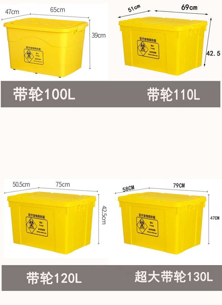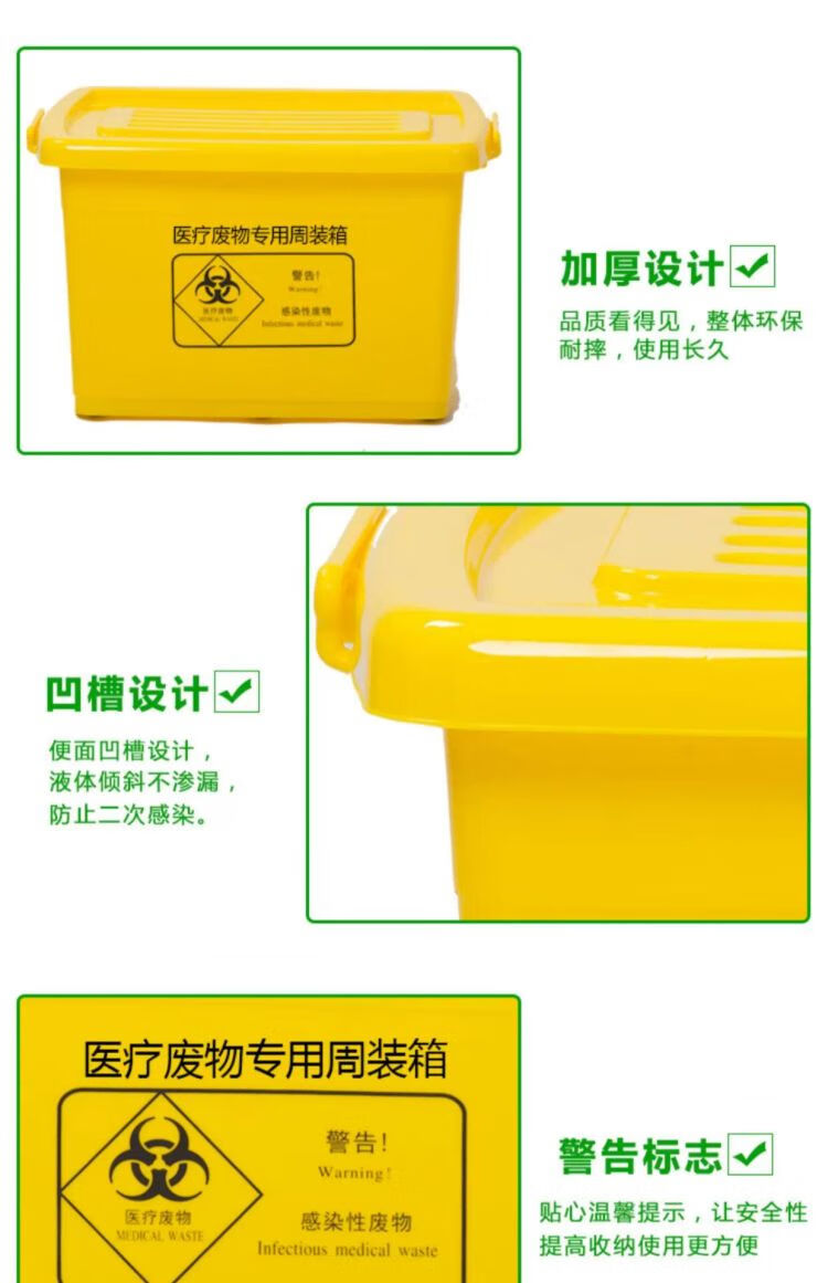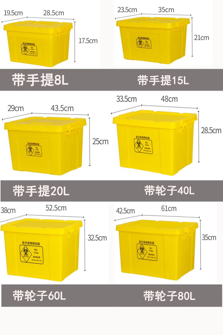 Customized medical waste special turnover box, extra thick hospital wheeled transfer box, yellow thickened extra large trash can, portable wheelless 15L transfer box/0.92 catties