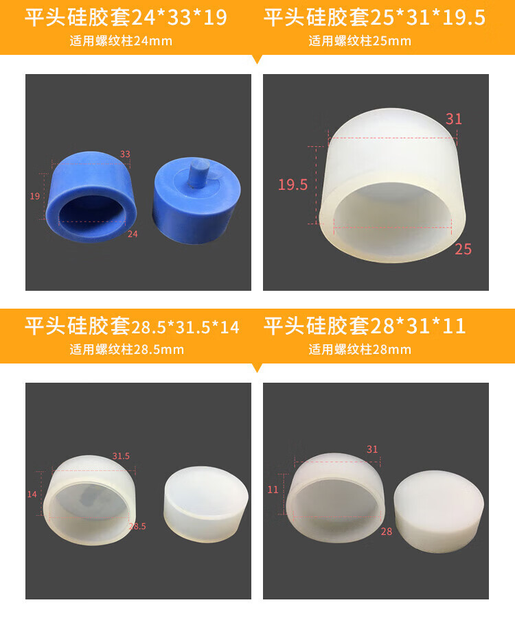 Flat head silicone sleeve, high temperature resistant rubber thread protection sleeve, screw cap, screw sealant sleeve, rubber cap 10.5*13.3*6.2 10 pcs