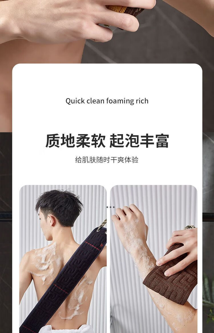 The back of the bathing artifact is thickened, enlarged, thickened and lengthened. Men's special bathing towel with strong coarse sand to rub the back without asking for help. Thickened - AB noodles back strip, coffee color