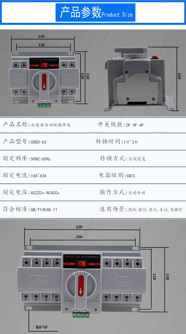 CDQ3-63 dual power automatic transfer switch single-phase 220V32A three-phase 380v63a switching 4p 4p 63A