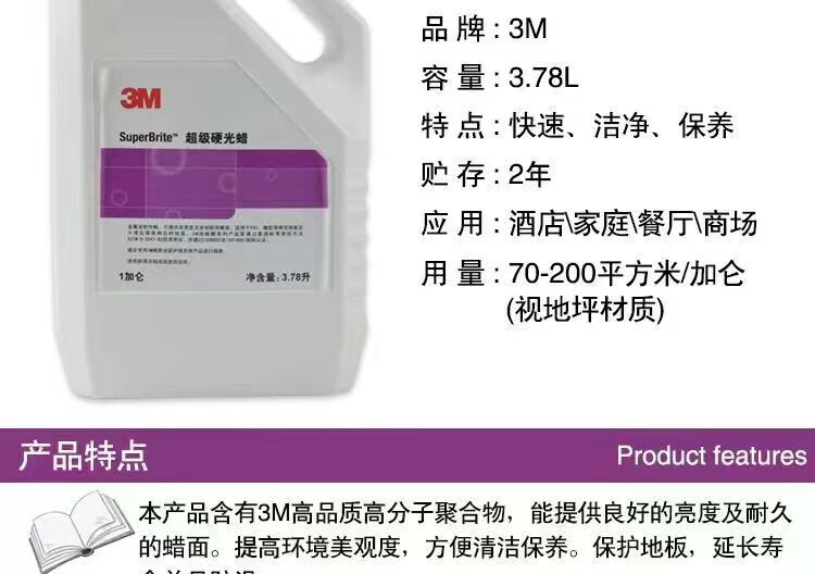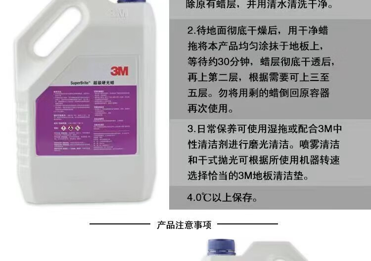 Genuine 3M floor wax vat 3M super hard light wax stone wax household commercial polishing wax floor wax PVC wax 3780ml