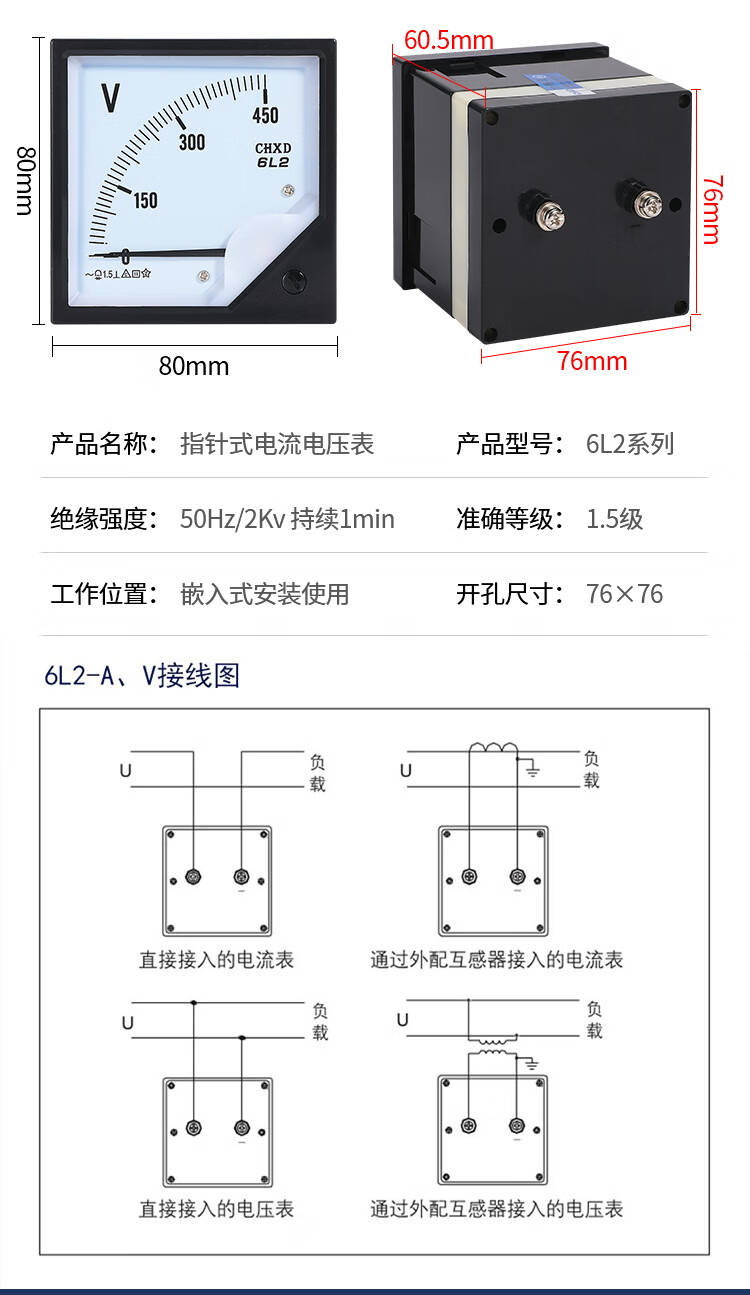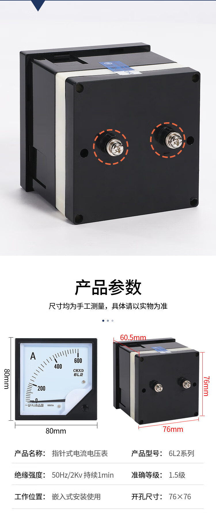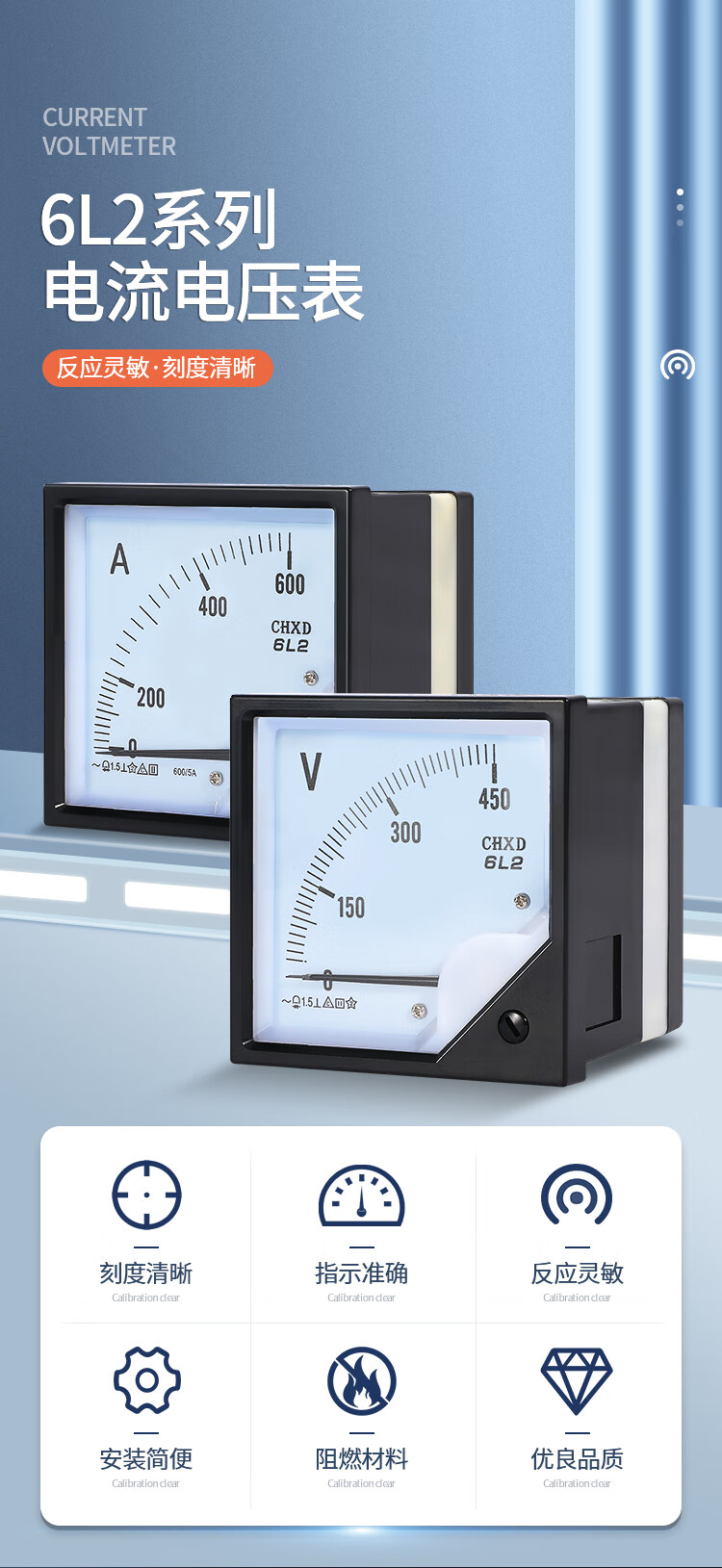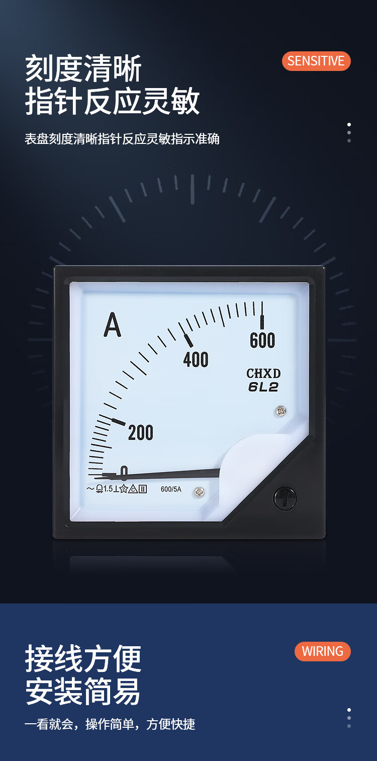 6L2-A AC ammeter 600/5 400/5 1000/5 pointer voltmeter 450V power factor meter 6L2- straight through 50A