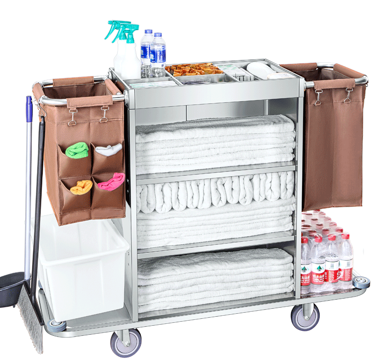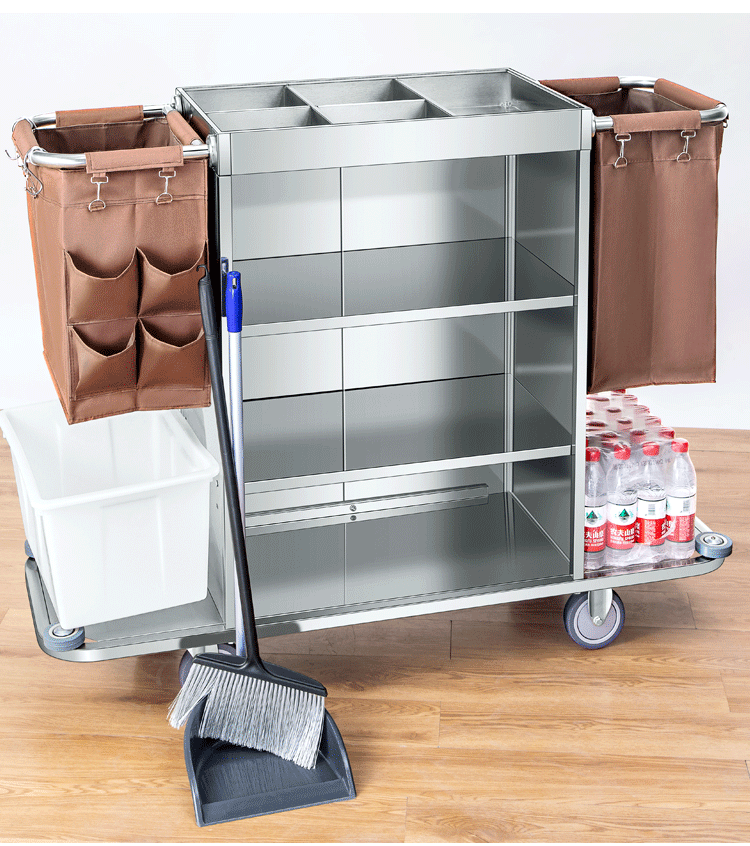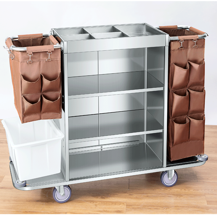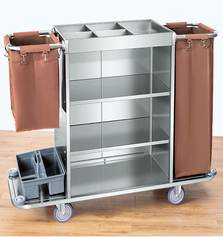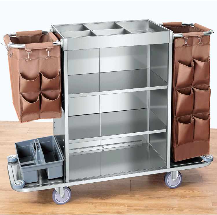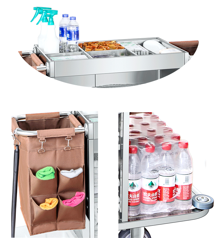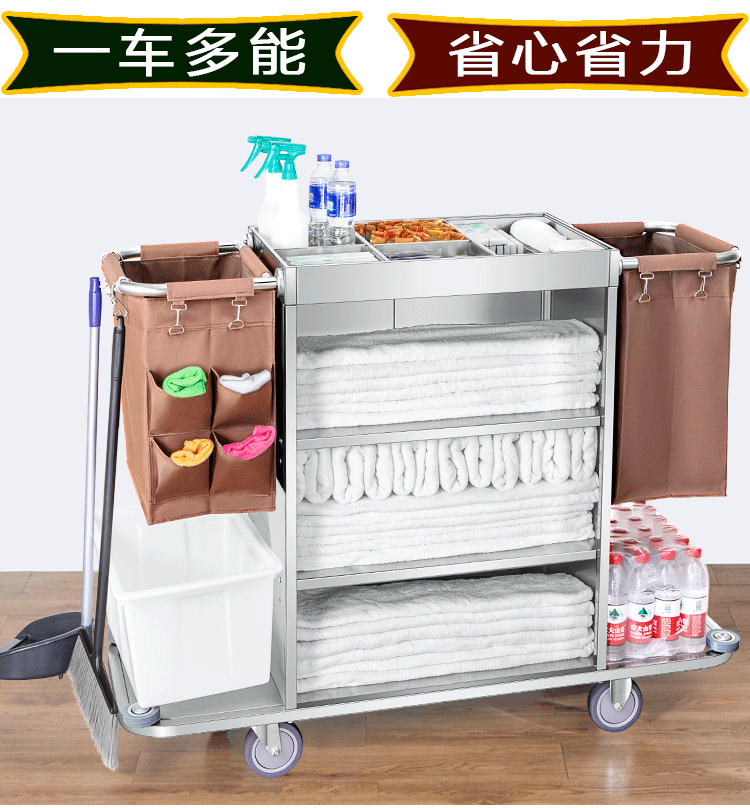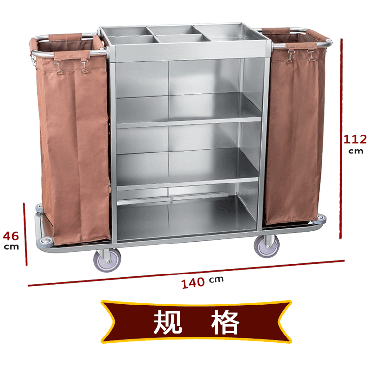 Hotel Yangyuan guest room linen cart stainless steel cleaning cart cleaning cart work cart bilateral room entrance cart stainless steel cart long and short multi-mouth bag trash can