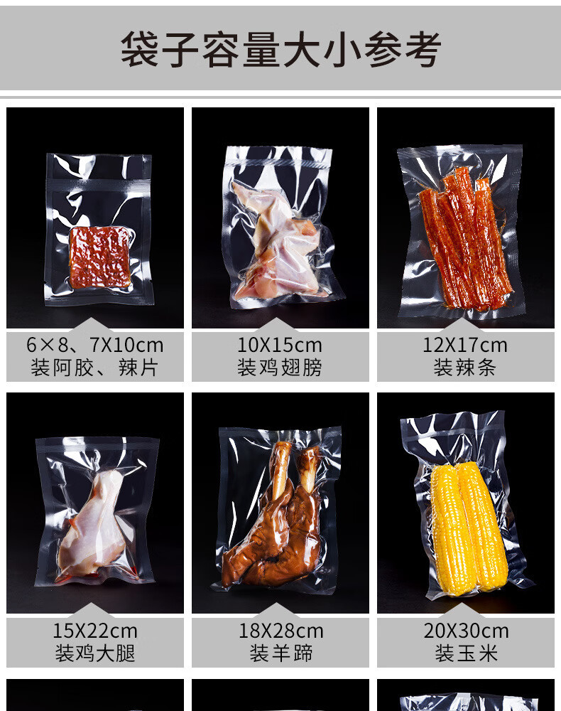 16 silk vacuum food bag packaging bag, rice heat sealing bag, vacuum sealing bag, sausage transparent plastic sealing bag, special bag for large vacuum food packaging machine 20*25*16 silk (100 pieces)