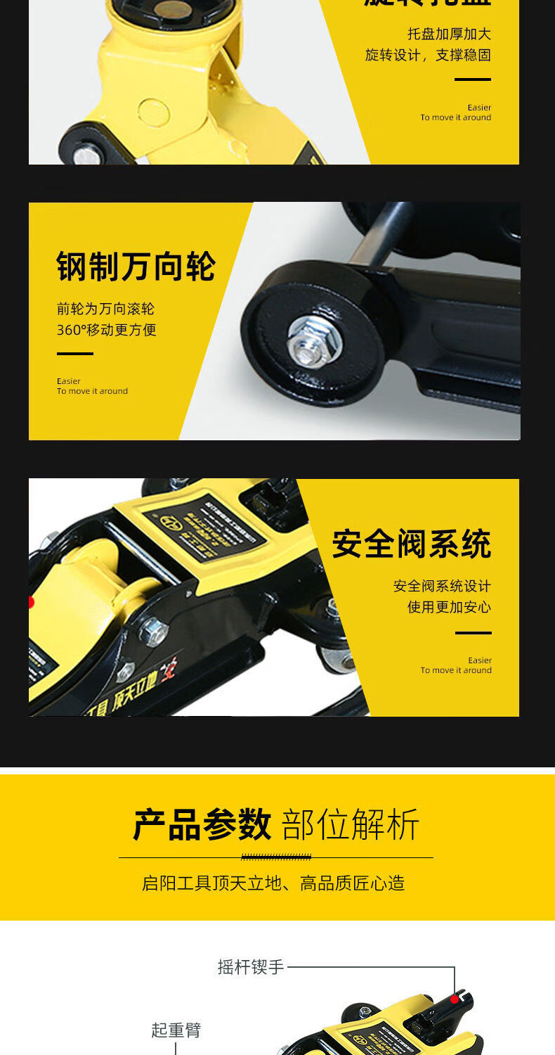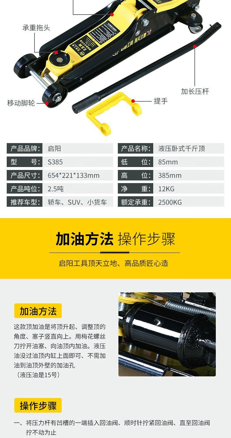 Qinkai Qiyang horizontal hydraulic jack for car repair ttt double pump ultra-low t car tire changing oil pressure 2 tons S295 net weight about 5.6kg