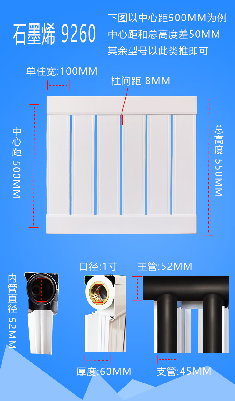 Pedersen Tianjin 9260 carbon plastic alloy graphene radiator corrosion-resistant large waterway centralized heating electric heating household pure white 300mm medium