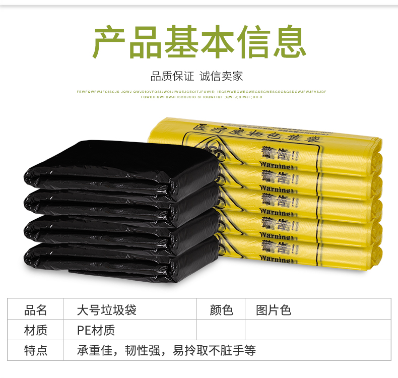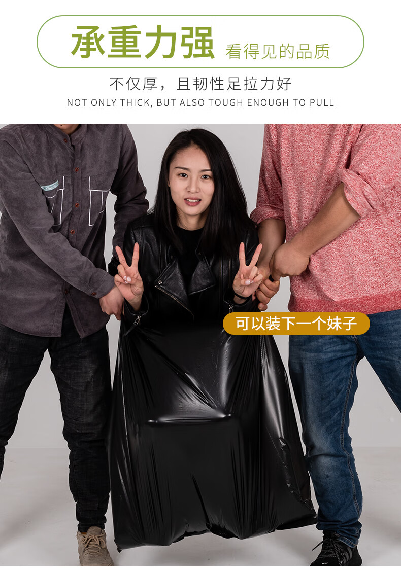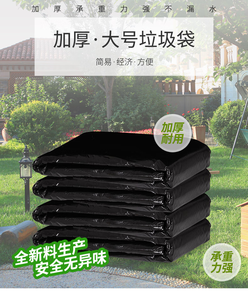 Black garbage bag large thickened sanitation garbage bag flat mouth extra large property commercial hotel plastic bag extra thick 5 wire 90*100 flat mouth 50 pieces (suitable for L thickened F