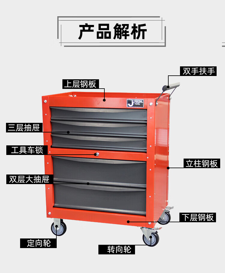 Jieke RC-5C tool trolley multi-functional car repair drawer tool box tool cabinet 5 layers tools