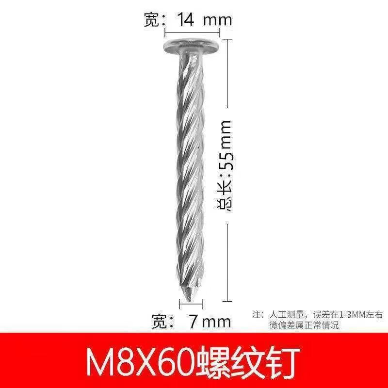 Qinkai threaded nails, round head threaded nails, twist nails, cement nails, blasting nails, cement nails, galvanized threaded nails, flat head nails 8*50 (about 45 per pound)