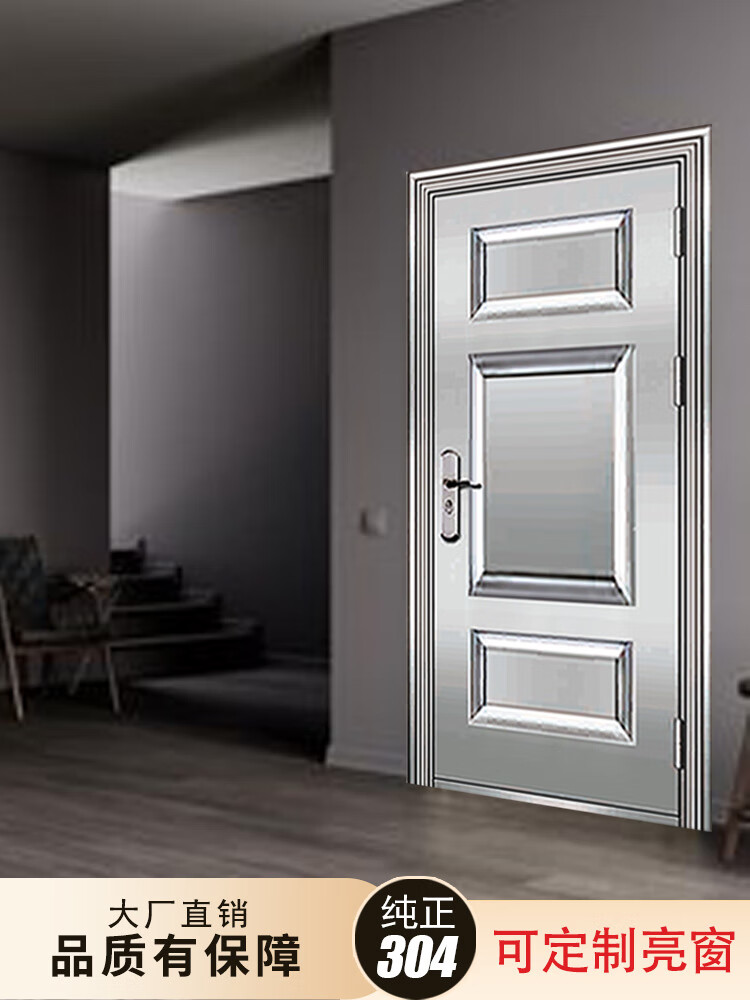 Qilicai 304 thickened stainless steel single door extra thick security door country back door villa stainless steel door white steel door (pure 304 thickened) inner bag inner left 860x1960mm