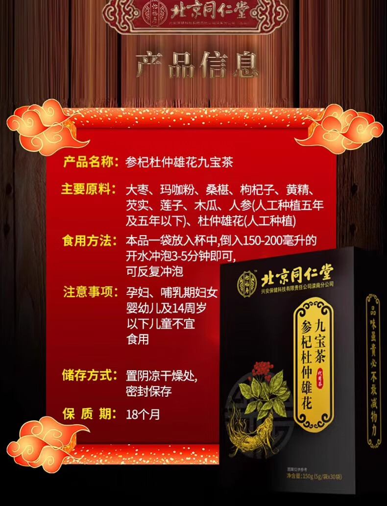 Tong Ren Tang Jiubao Tea Ginseng, Wolfberry, Mulberry, Men's Nourishing Tea, Maca, Polygonatum Polygonatum, Ginseng, Qi, Eucommia Male Flower Support, 3 boxes of Men's Nourishing Tea, 90 sachets
