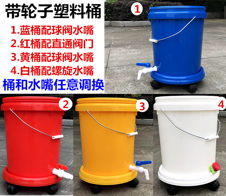 Thickened portable plastic mop bucket with wheels and faucet for drainage, large and small mopping, car washing, storage and foot soaking bucket 20L blue pulley bucket + ball valve faucet