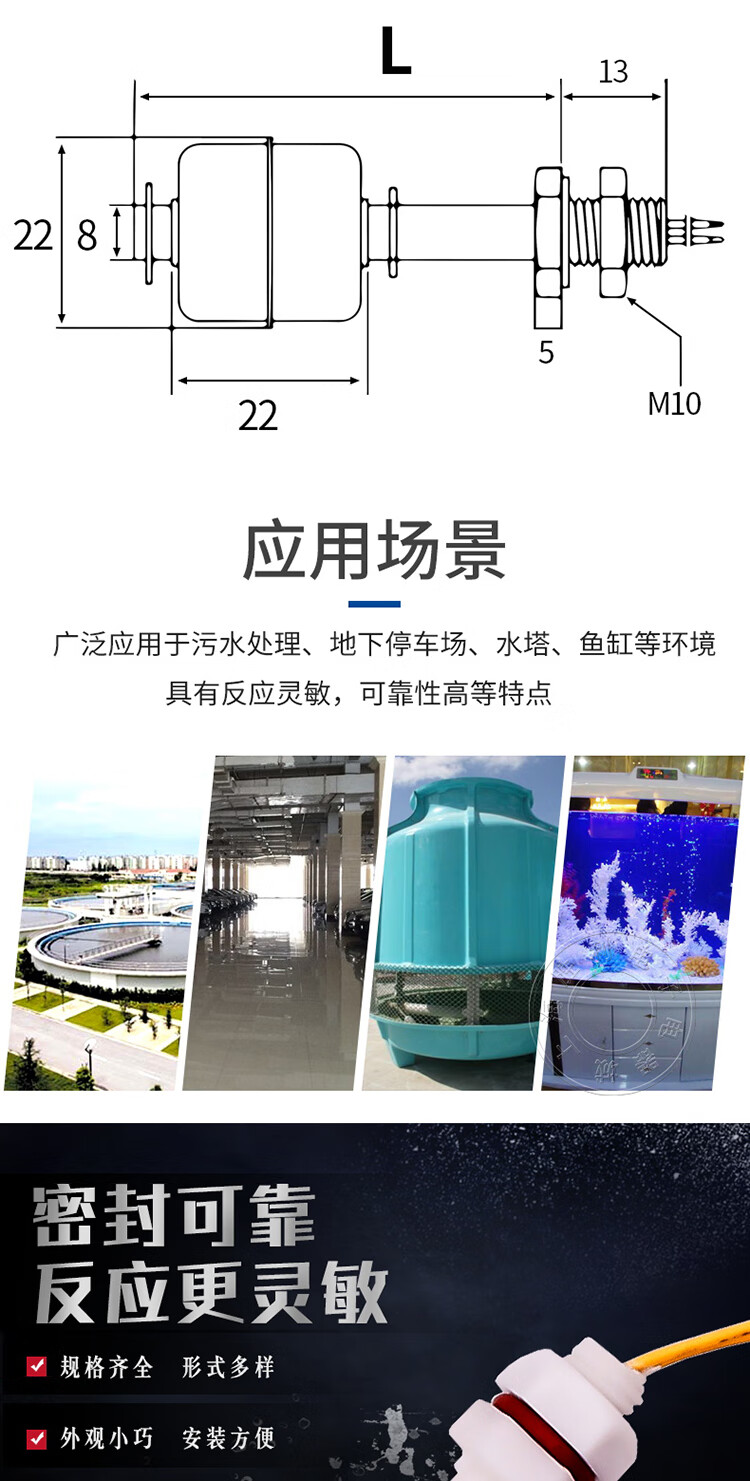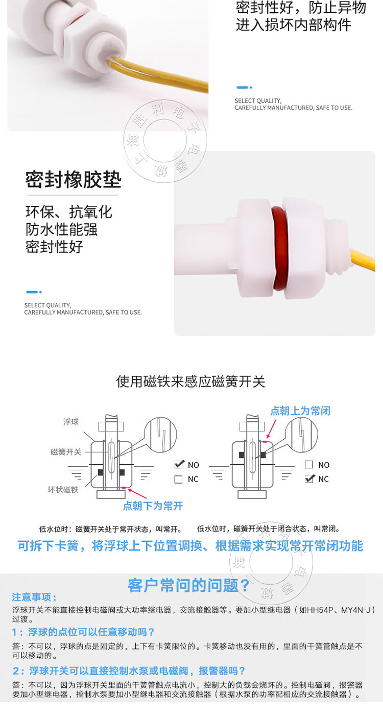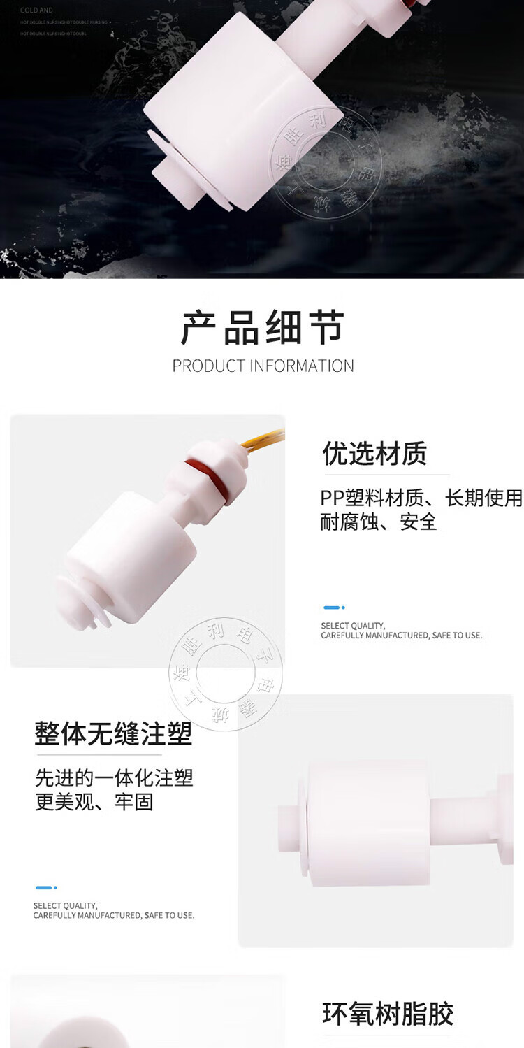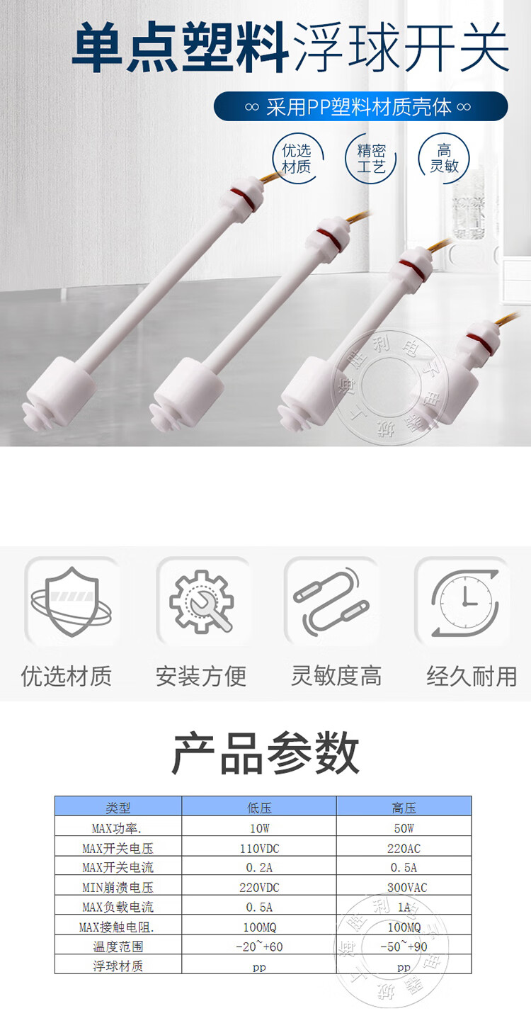 PP liquid level switch/water level switch/float switch/anti-corrosion switch/liquid level controller/plastic float 75mm 0-220V