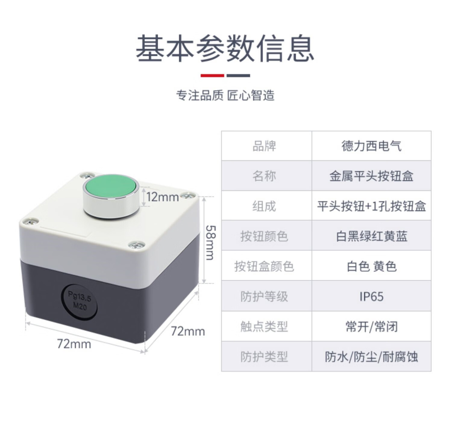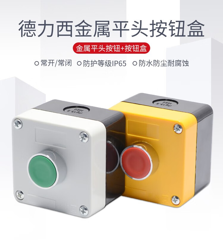 Button box flat head self-reset start switch box 1 hole waterproof and dustproof IP65 green normally open BA31 yellow button box + green 1 normally closed set