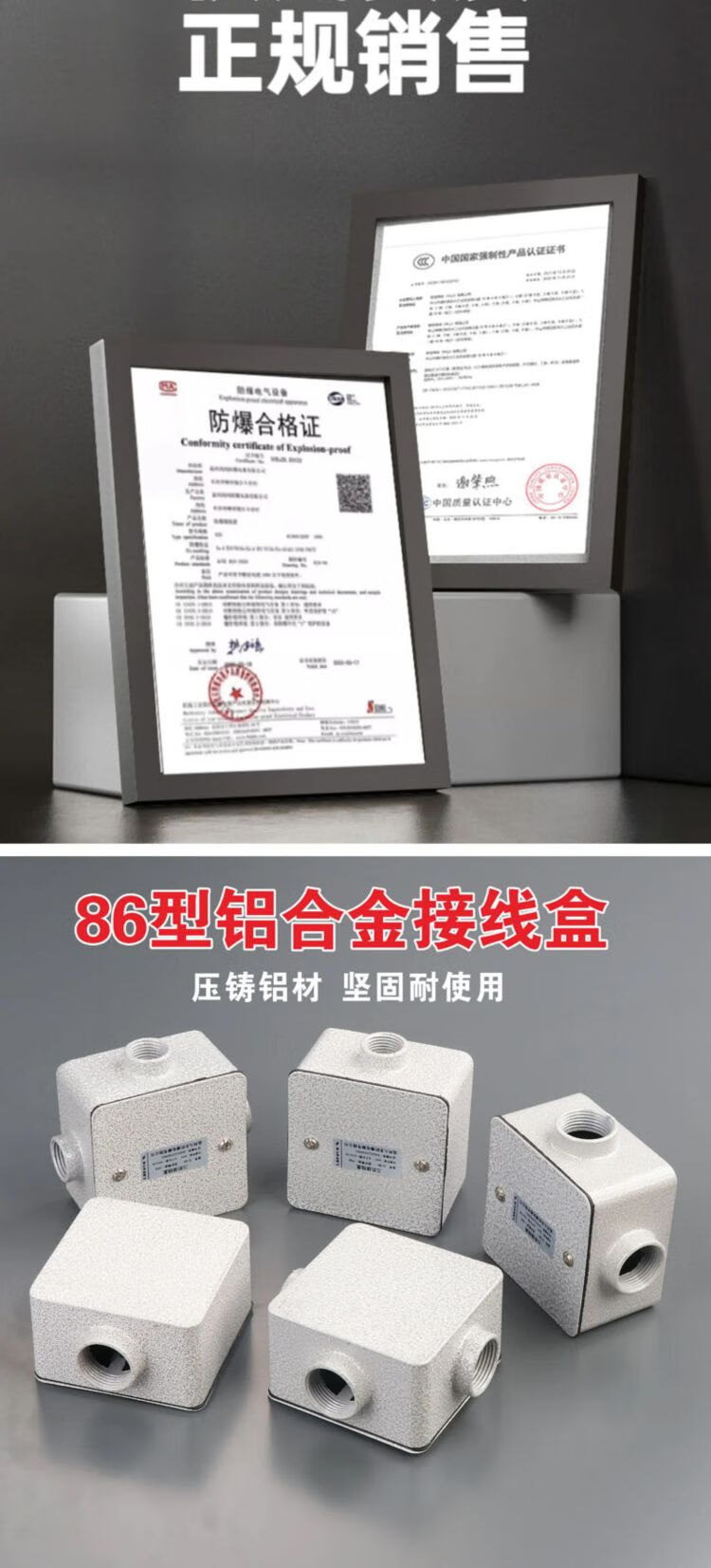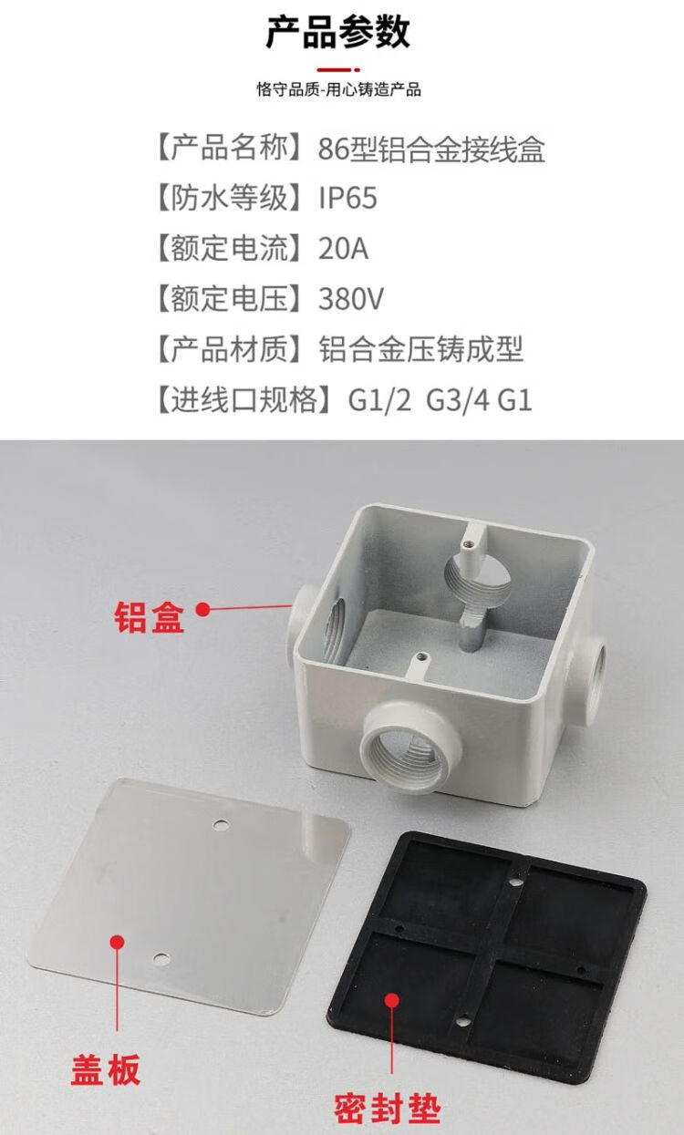 Type 86 Aluminum Alloy Square Wiring Box Exposed and Concealed Threading Switch Bottom Box H50 Three-Proof Type 86 DN20 (3/4 Six Points) One Pass